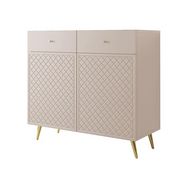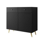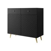 Le buffet bas Sorolla de 100 cm est la pièce idéale pour ajouter une touche de raffinement à votre intérieur tout en offrant un rangement pratique. Avec ses nombreux compartiments, il vous permet d'organiser vos objets du quotidien avec style, que ce soit dans le salon, la salle à manger ou l'entrée. Son design simple et épuré est facile à monter, vous offrant un mobilier élégant sans complication. Les pieds et poignées dorés accentuent le luxe du meuble, apportant une finition sophistiquée à votre décor.