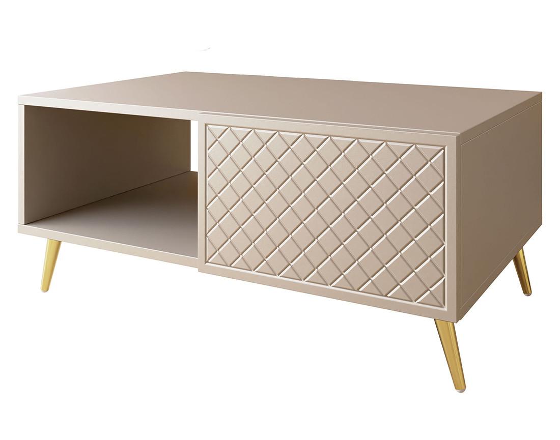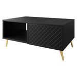 La table basse Sorolla de 100 cm allie sophistication et fonctionnalité, apportant une touche chic à votre salon tout en offrant un espace de rangement généreux. Équipée de plusieurs compartiments, elle vous permet de garder vos magazines, télécommandes et autres objets essentiels à portée de main. Facile à monter, cette table basse se distingue par ses pieds dorés qui ajoutent une note élégante et raffinée à votre décor. Disponible en deux coloris, elle s'adapte facilement à vos préférences stylistiques.