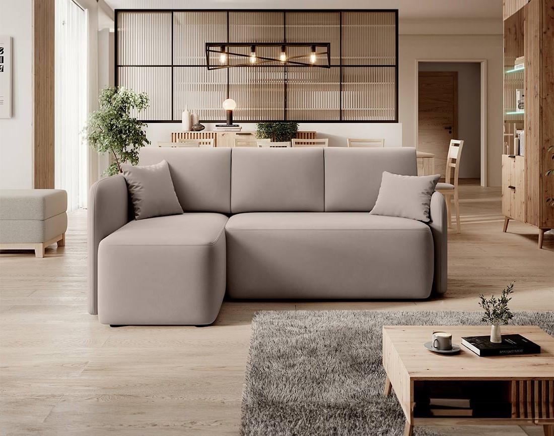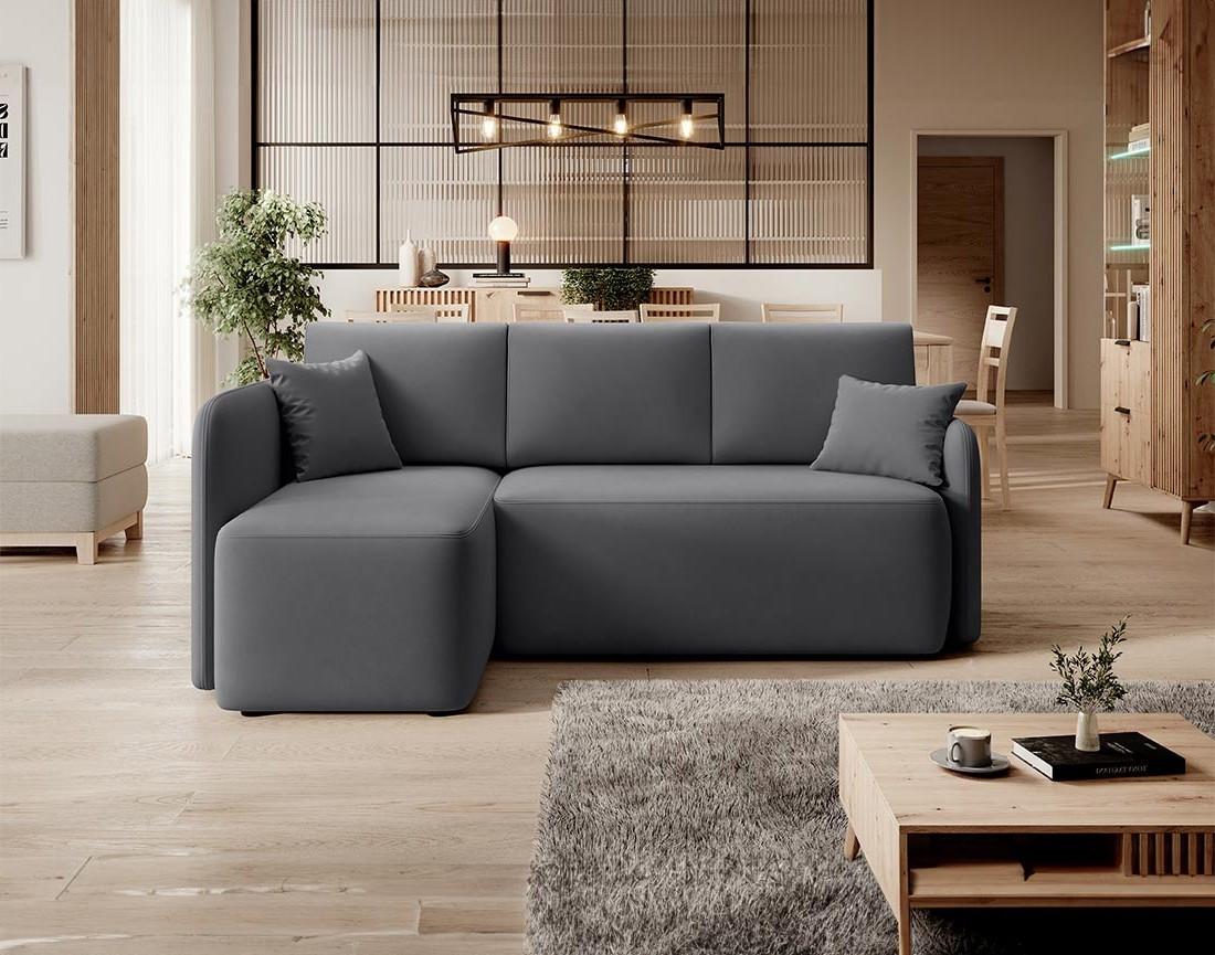 Suzie - canapé d'angle gauche 4 places convertible avec coffre en velours