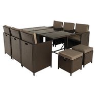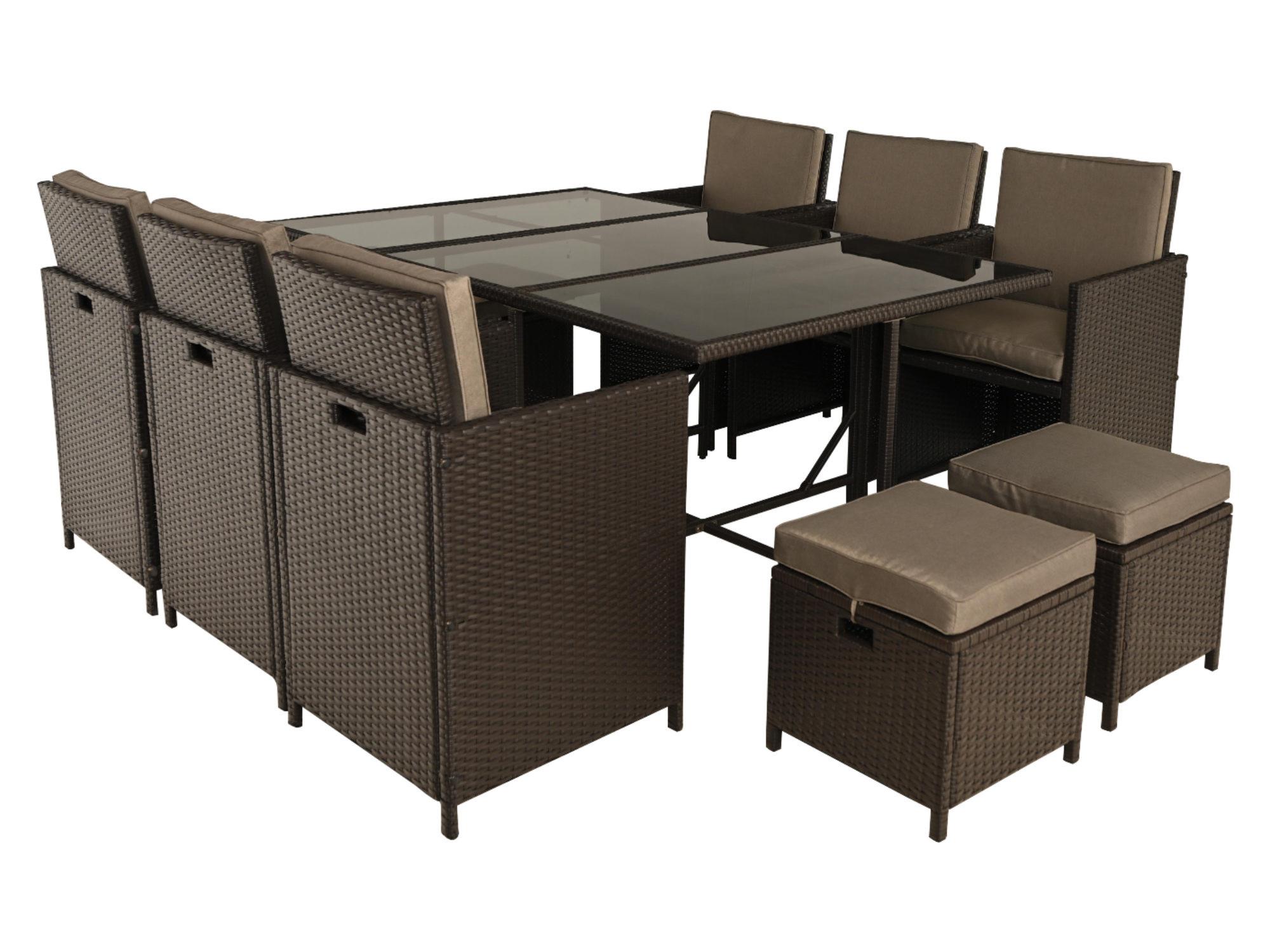 Tao - salon de jardin encastrable 10 places - résine tressée marron - coussins taupe - plateau en verre + housse de protection