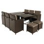 Ajoutez une touche moderne à votre espace extérieur avec notre salon de jardin Tao en résine tressée. Ce salon de jardin est conçu pour accueillir jusqu'à 10 personnes, idéal pour les réunions en famille ou entre amis. Conçu en résine tressée de couleur marron, votre salon de jardin Tao 10 places arborera un design sobre mais tout aussi tendance. Les coussins de couleur taupe viendront accentuer le style nature de votre salon de jardin et se marieront parfaitement avec la couleur marron de la résine tressée. Grâce à son design, ce salon de jardin trouvera aussi bien sa place dans un jardin que dans un intérieur type véranda.