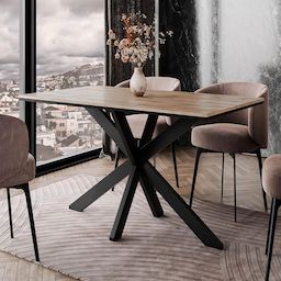 Tom - table à manger - plateau effet bois - pieds en métal - 4 à 6 personnes
