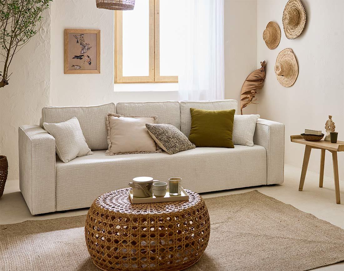 - Présentation de la collection : Craquez pour les canapés et pouf de la collection Topaze. Laissez-vous séduire par leur style boho, leurs lignes arrondies et leurs différents revêtements. Très pratiques, les canapés sont dotés d'une fonction convertible et d'un coffre.