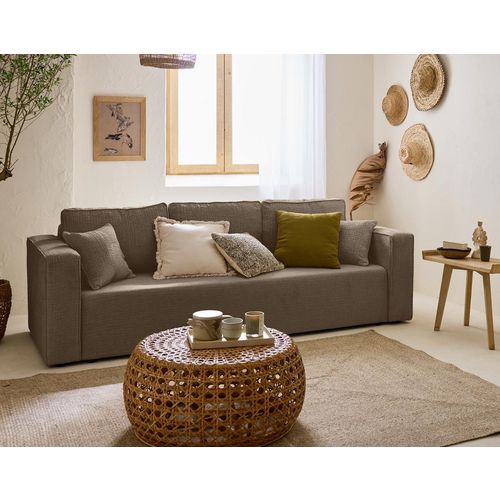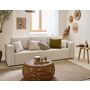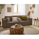 Le canapé Topaze 3 places fait partie de ces modèles pour lesquels on craque au premier coup d'œil : ses accoudoirs aux dimensions généreuses, ses beaux coussins de dossier et son revêtement en tissu velours relief en font un modèle d'exception. Véritable invitation à la détente et au bien-être, ce joli modèle très tendance s'harmonisera facilement avec les autres éléments de votre ameublement, grâce à son coloris à personnaliser. Choisissez ainsi votre nouveau canapé en écru, beige, taupe, gris, terracotta ou vert, selon vos goûts et l'esthétique désirée ! N'hésitez pas à associer votre nouveau canapé avec un petit pouf ou un fauteuil de la collection Topaze, pour un ensemble d'assises parfaitement assorties. Osez également jouer la carte du contraste, en choisissant un pouf vert avec le canapé Topaze couleur écru, ou associez une assise terracotta à une autre de couleur grise, pour un ensemble original et très tendance.