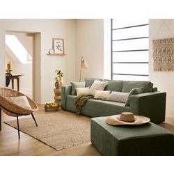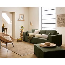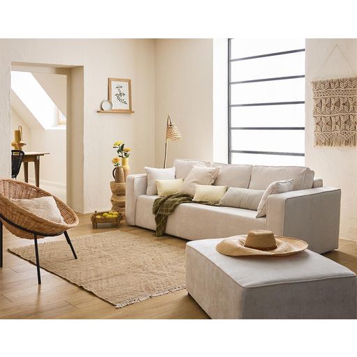 Grâce à son assise généreuse, ses coussins de dossier spacieux et son velours côtelé plat, le canapé Topaze 3 places est une véritable invitation à la détente. Son magnifique tissu est une variation très tendance du velours côtelé, vous permettant d'intégrer à votre salon une véritable pièce déco, pile dans l'air du temps. Vous adorerez vous y installer en bonne compagnie ou vous y lover lors de vos sessions de lecture. Ce beau modèle à l'allure contemporaine s'intègre idéalement dans les décorations soignées : choisissez sa couleur en fonction de l'ambiance désirée, pour appuyer votre style décoratif de prédilection et harmoniser facilement votre agencement intérieur. Sélectionnez ce modèle en beige, écru ou vert sauge pour une touche naturelle et minimaliste chic, ou jouez la carte de la modernité en optant pour une teinte verte, bleue, latté ou grise. À votre guise !
