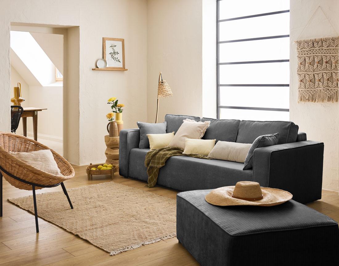 - Matière du canapé : Velours côtelé plat