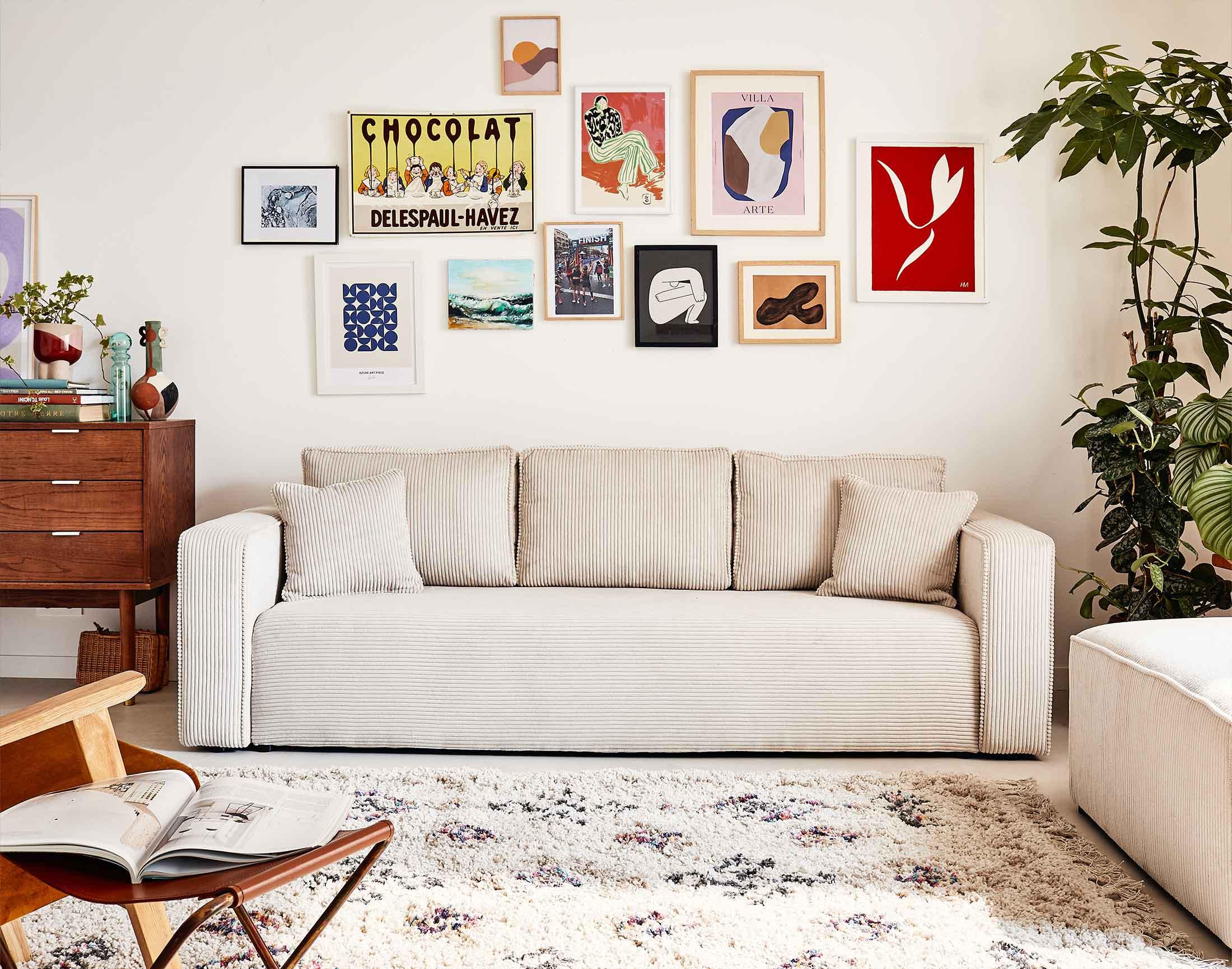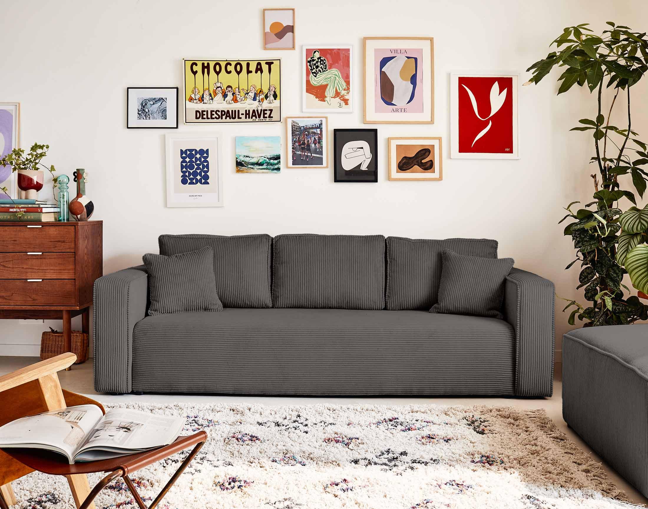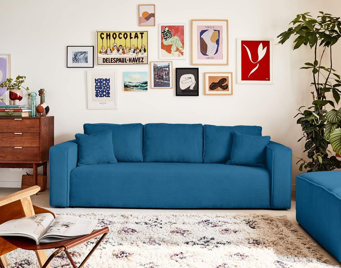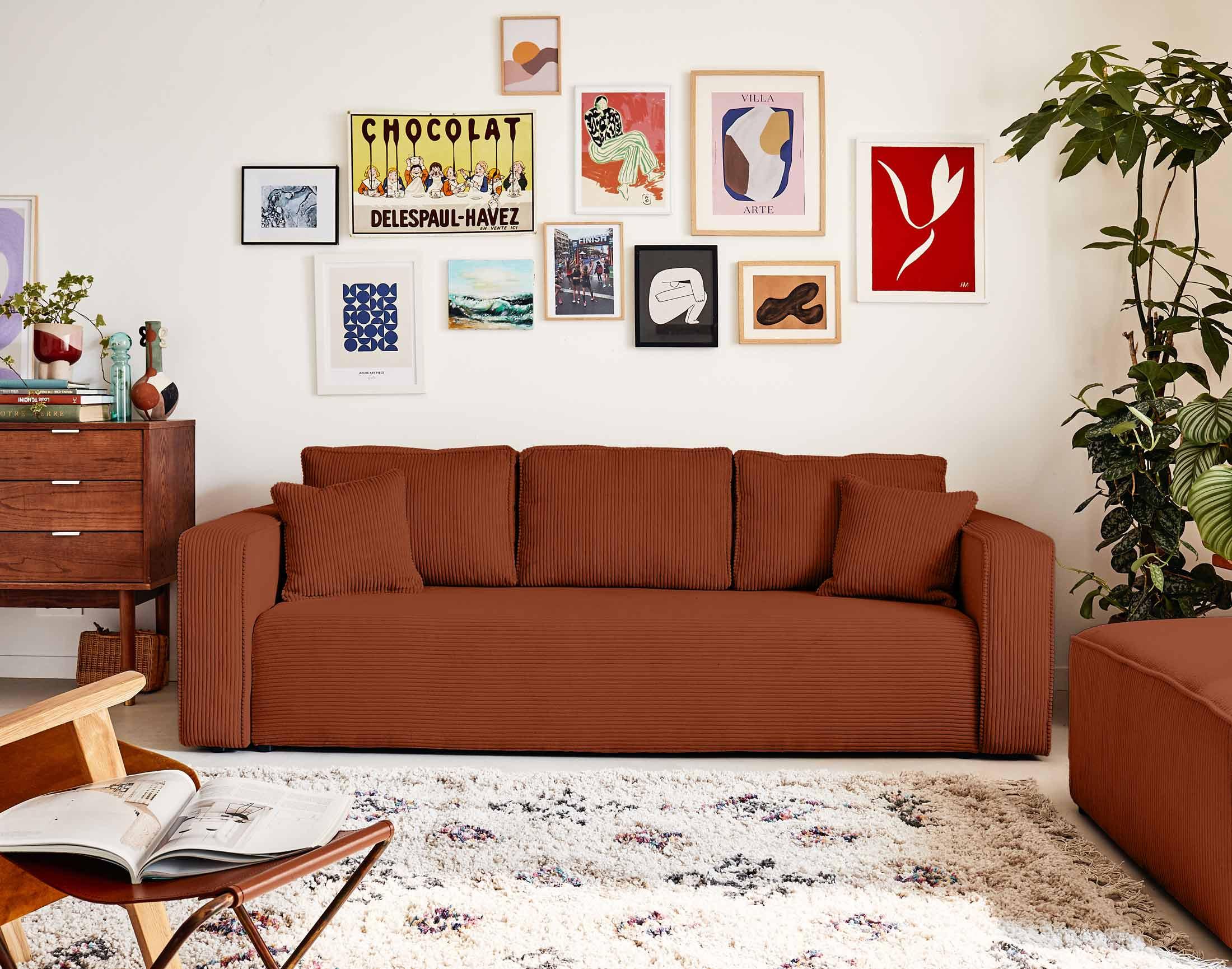 Topaze : Le canapé droit 3 places en velours côtelé de rêve des adeptes de décoration intérieure.