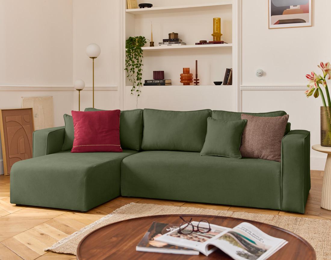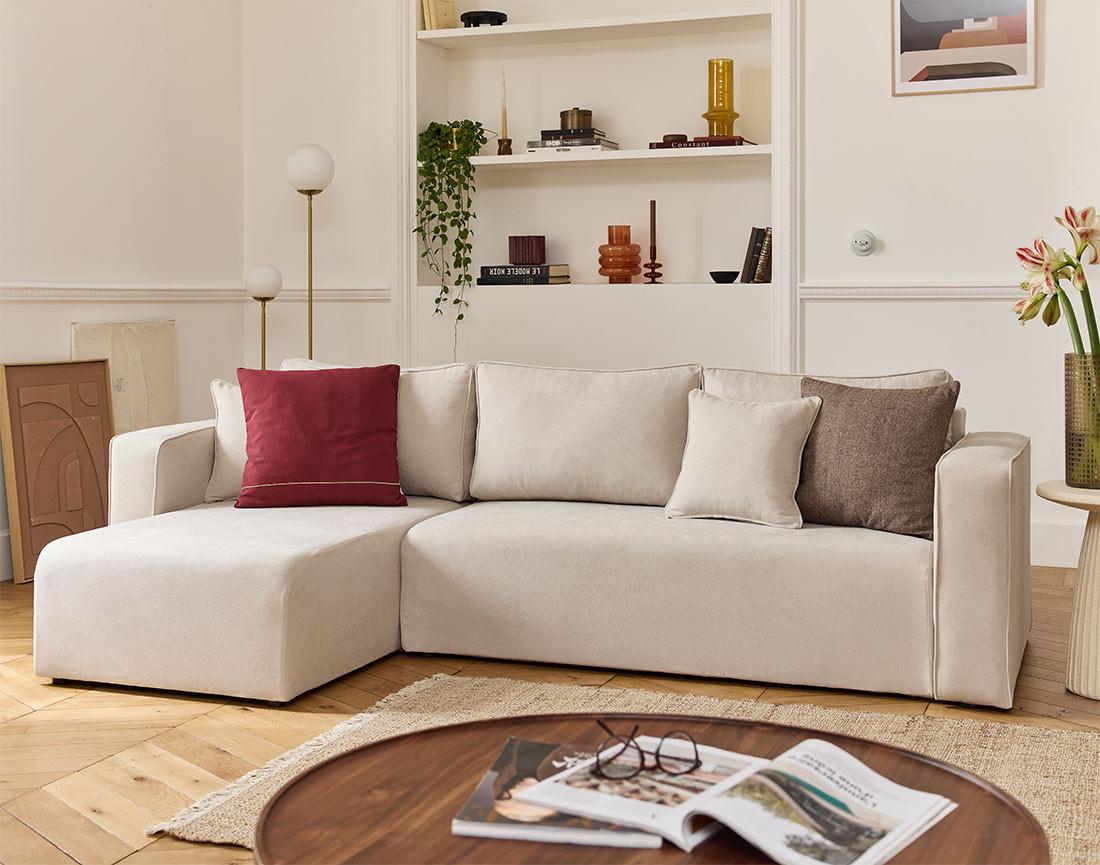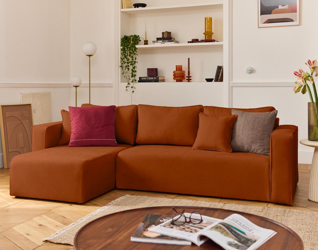 Découvrez Topaze, le canapé d'angle qui s'adapte à votre décoration du moment. Si vous aimez changer régulièrement de meuble, investissez dans ce canapé d'angle déhoussable à l'infini. Vous avez la possibilité de conserver la housse de base en tissu ou bien acheter des housses supplémentaires pour varier les plaisirs. Une texture et une couleur différentes à chaque saison ? Tout devient possible. Et grâce à son design intelligent, Topaze vous permet de choisir l'angle selon la configuration de votre pièce : à droite ou à gauche, il s'ajuste à vos besoins. Pour cette housse en tissu, le choix de couleurs est très varié : beige, gris clair, vert, bleu marine, bleu, rouille, prune, noir et gris.