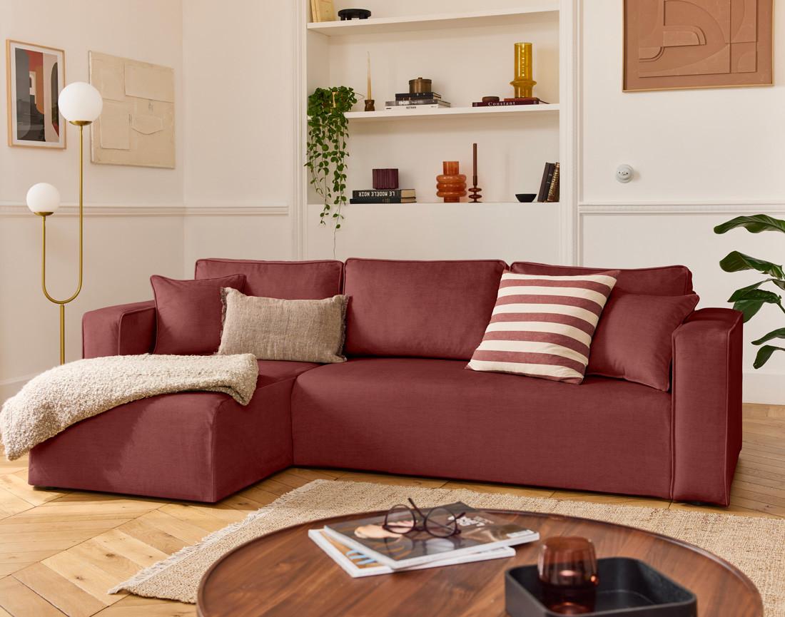 Topaze va vite devenir le meuble fétiche de votre décoration. Ce canapé d'angle est très apprécié pour son toucher soyeux, avec sa housse en velours. Disponible en plusieurs coloris — beige, bordeaux, vert, noir, bleu et gris — il s'intègre parfaitement dans tous les styles de décor. Le canapé d'angle déhoussable Topaze est le meuble idéal, à la fois économique et écologique. Nous proposons différentes housses pour varier les plaisirs : velours côtelé, velours texturé, tissu et tissu bouclette. À vous de jouer selon la saison et vos envies du moment. Chaque revêtement se décline dans de nombreuses couleurs différentes. Les possibilités sont grandes ! Pour un entretien facile, la housse est lavable à la main et en machine à 30° maximum.