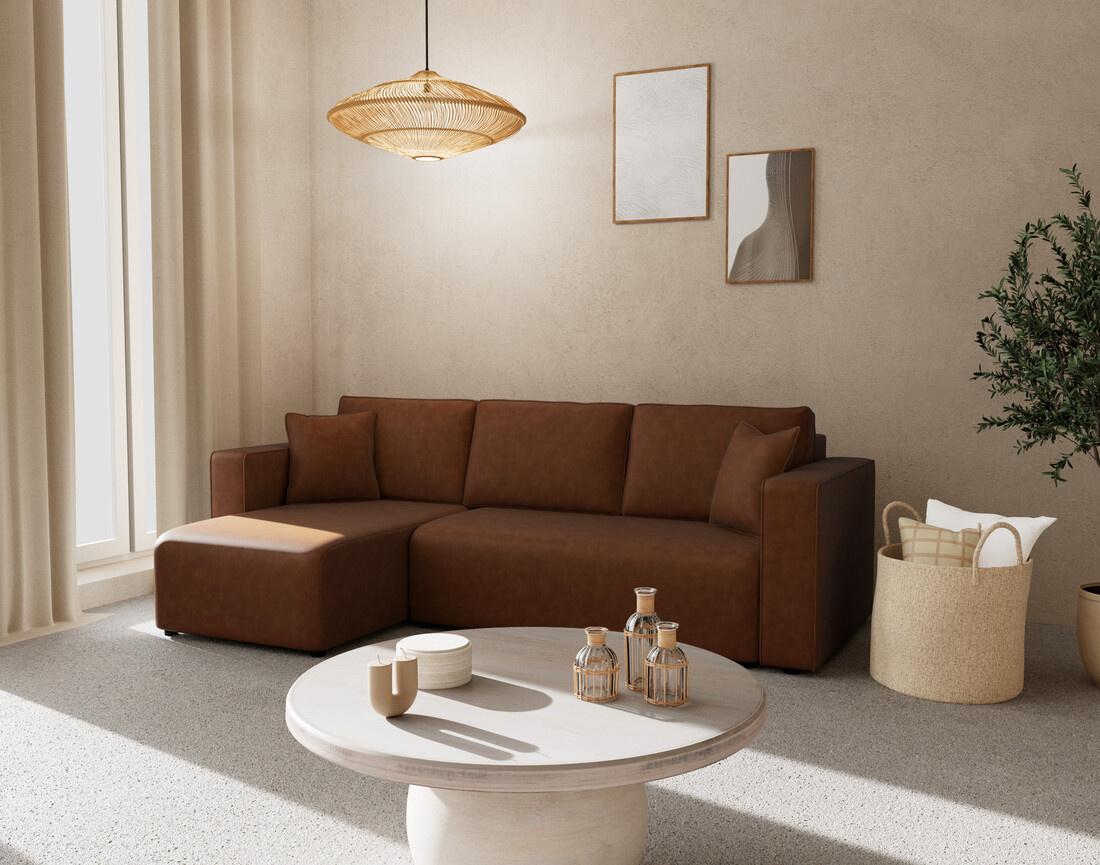 Topaze - canapé d'angle réversible 4 places convertible avec coffre en simili