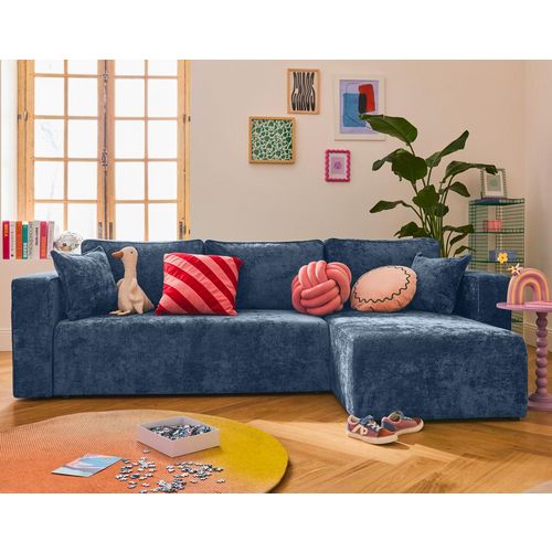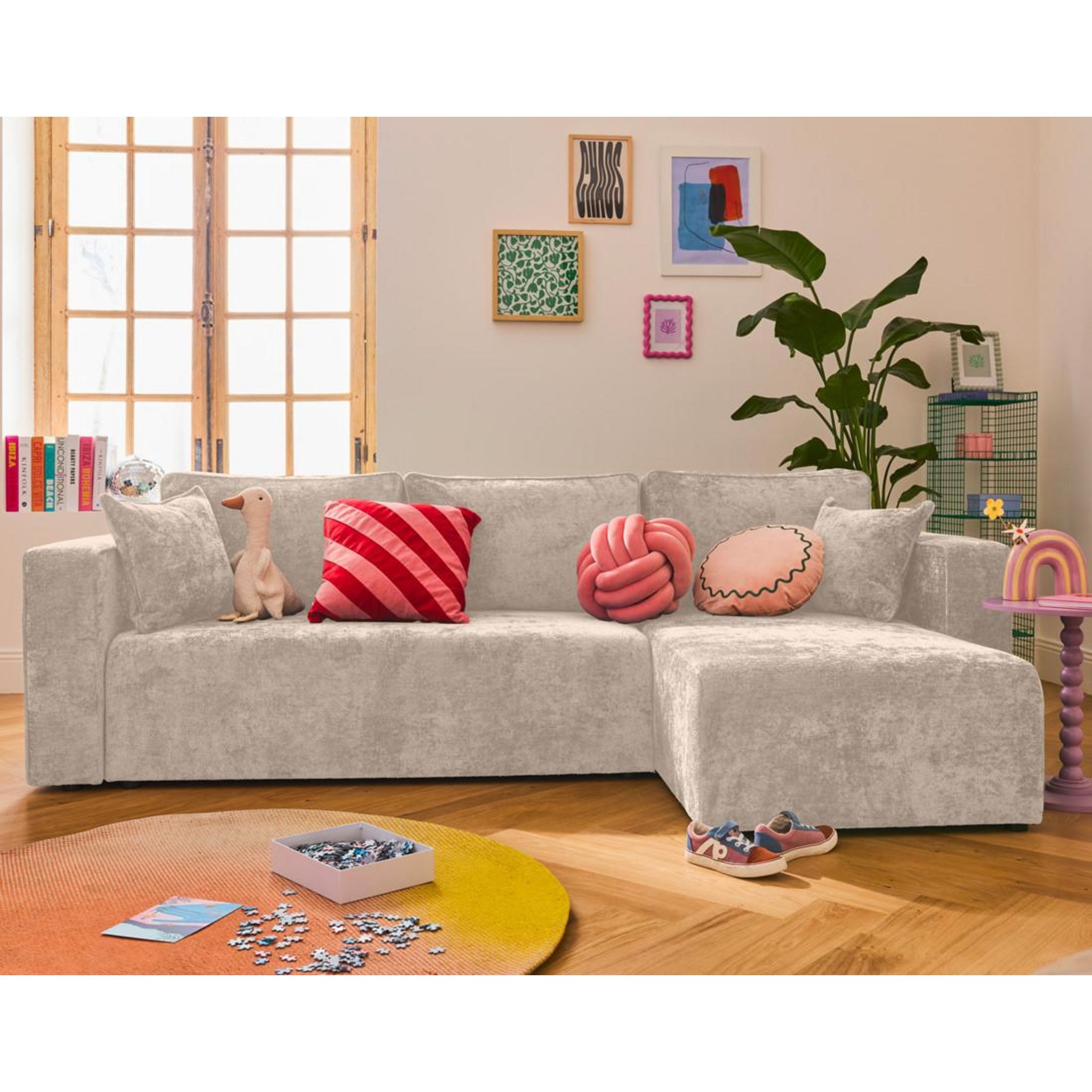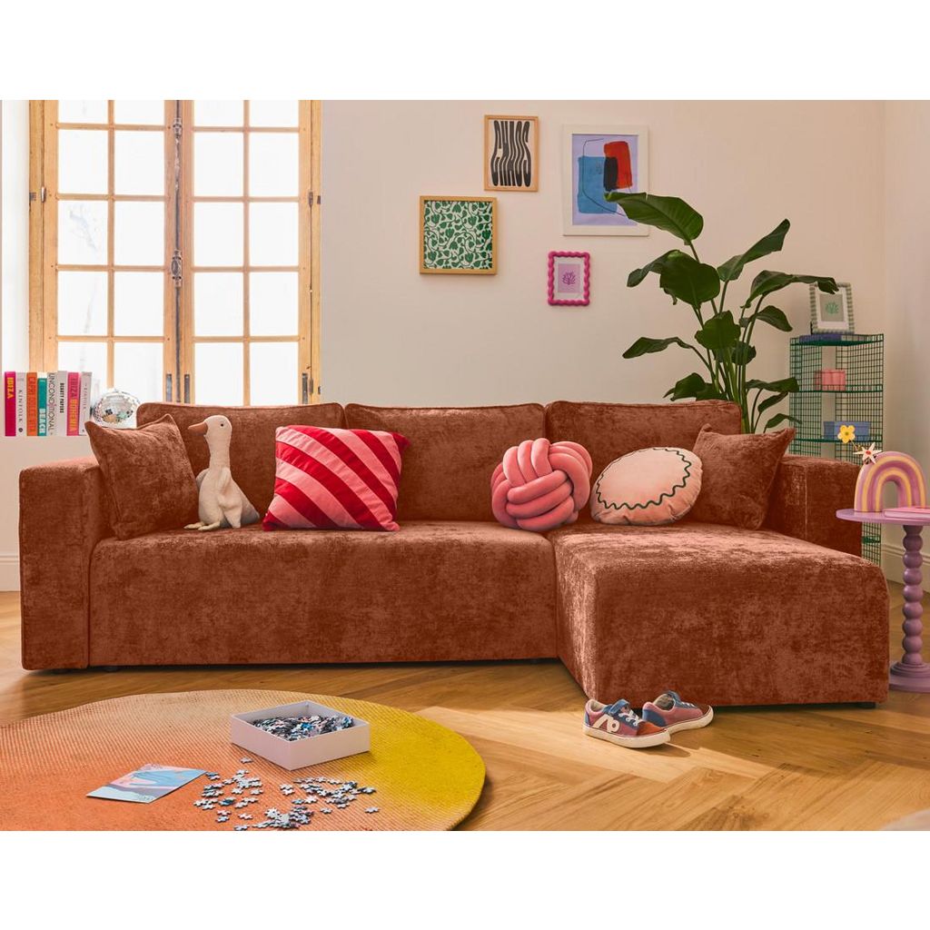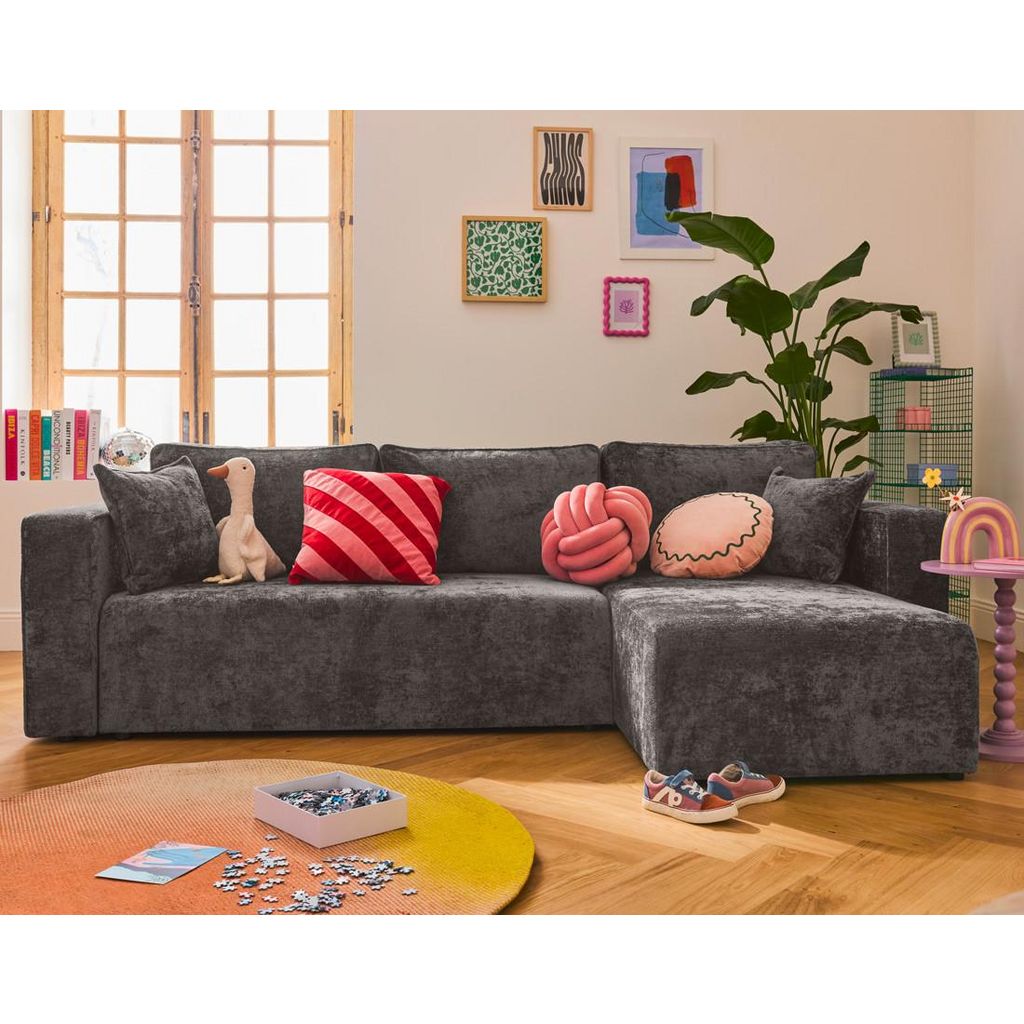 Topaze - canapé d'angle réversible 4 places convertible avec coffre en velours à relief texturé