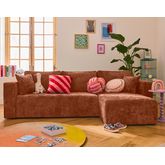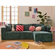 - Détail des matières : Assise : Mouse polyuréthane 28kg/m3 – Dossier : Flocons de mousse – Ressorts ondulés – Structure en bois et panneaux de particules – Revêtement en velours à relief texturé – Pieds en plastique