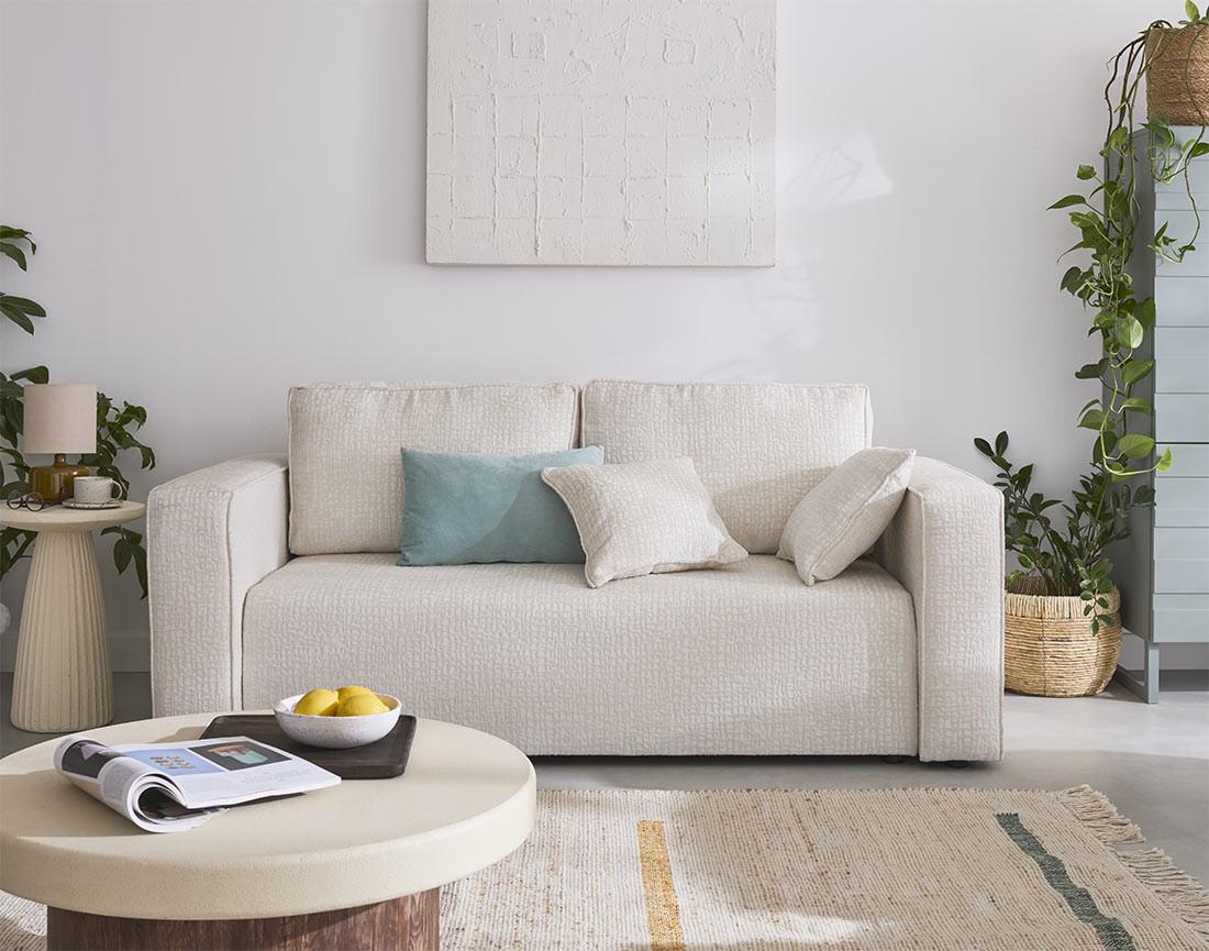 Outre son design attrayant, le canapé Topaze est aussi un véritable havre de paix pour se relaxer. Son assise est accueillante et généreusement rembourrée pour vous offrir un confort optimal pour lire, regarder un film ou discuter entre amis. Les deux coussins décoratifs inclus apportent une touche supplémentaire de confort et de personnalisation. Assortis au revêtement en velours relief, ce sont des accessoires qui améliorent votre expérience de détente. En associant élégance altique et touche contemporaine, le canapé Topaze répond aux envies des amateurs de design qui souhaitent un intérieur à la fois confortable et distinctif. Optez pour la couleur qui vous ressemble le plus parmi les différentes teintes proposées : écru, beige, gris, vert, taupe ou terracotta.
