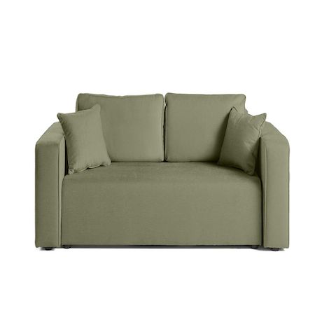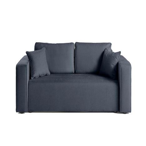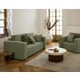 - Détail des matières : Assise : Mouse polyuréthane 28kg/m3 – Dossier : Flocons de mousse – Ressorts ondulés – Structure en bois et panneaux de particules – Revêtement en tissu 100% polyester – Pieds en plastique noir
