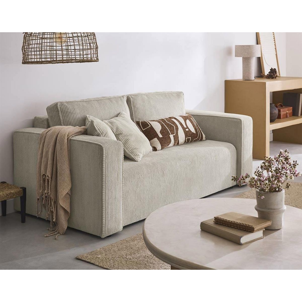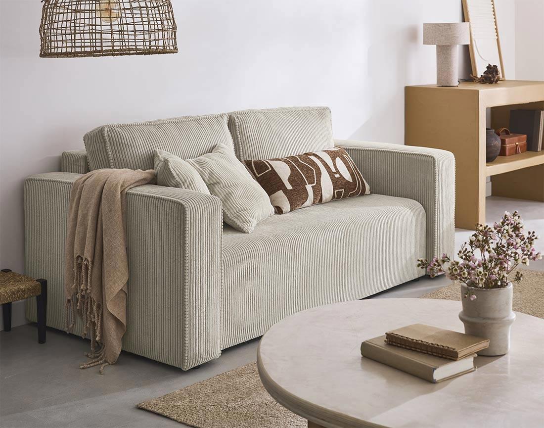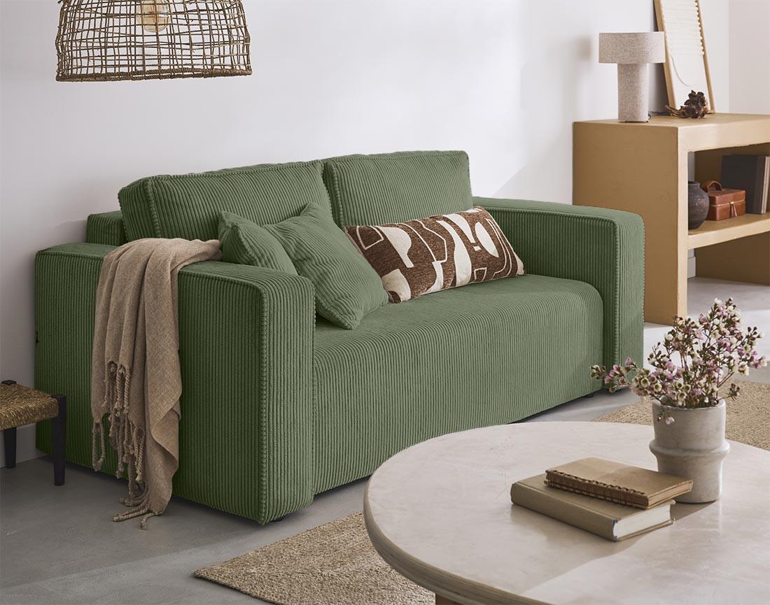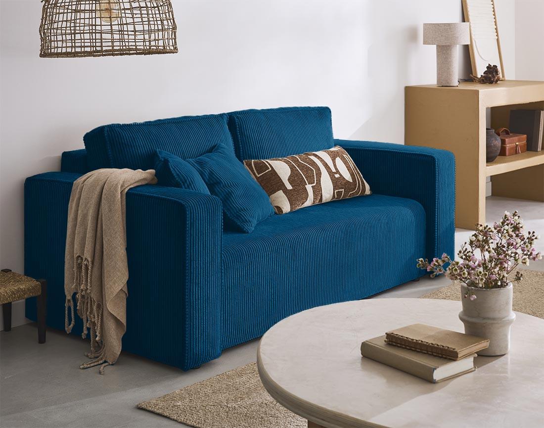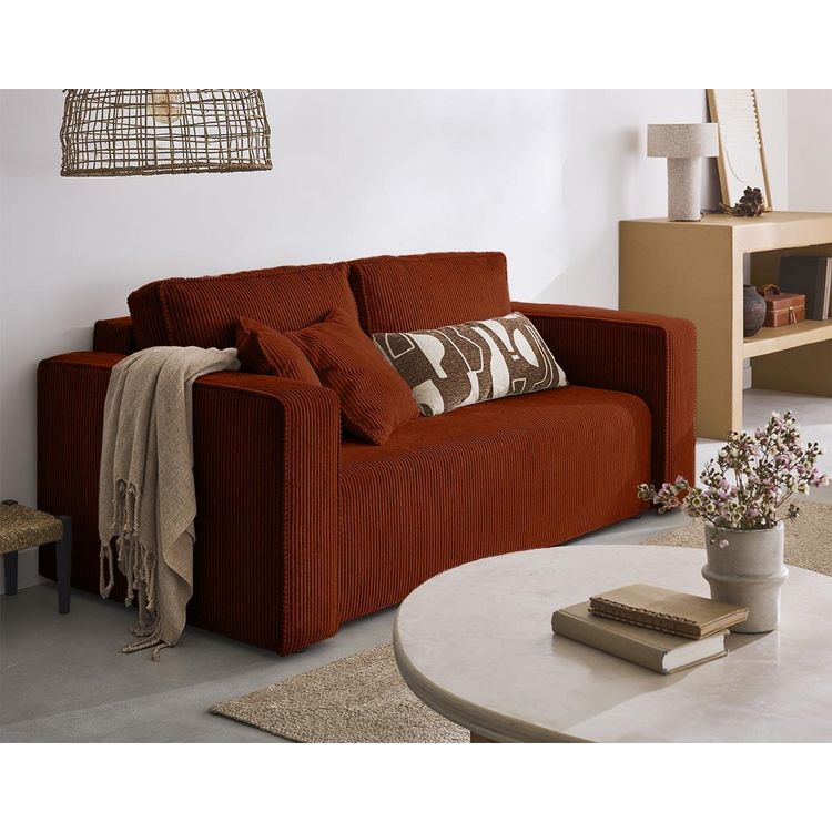 Vous êtes à la recherche d'un canapé élégant et confortable pour votre salon ? Voici Topaze, un canapé droit 2 places en velours côtelé qui allie style et confort. À la fois compact et raffiné, il s'adapte parfaitement aux petits espaces. Grâce à son revêtement en velours côtelé, il invite à la détente et au confort, tout en étant un véritable atout déco. Son large choix de couleurs permet de s'adapter parfaitement à tous les intérieurs. Optez pour la teinte que vous préférez parmi le beige apaisant, le gris intemporel, le bleu ardoise raffiné, le terracotta chaleureux ou le vert sauge subtil. Deux coussins décoratifs de la même couleur sont livrés avec.
