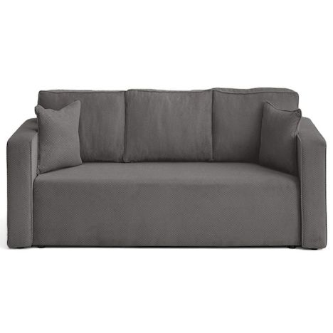 - Détail des matières : Assise : Mouse polyuréthane 28kg/m3 – Dossier : Flocons de mousse – Ressorts ondulés – Structure en bois aggloméré et panneaux de particules – Revêtement en velours texturé 100% polyester – Pieds en plastique