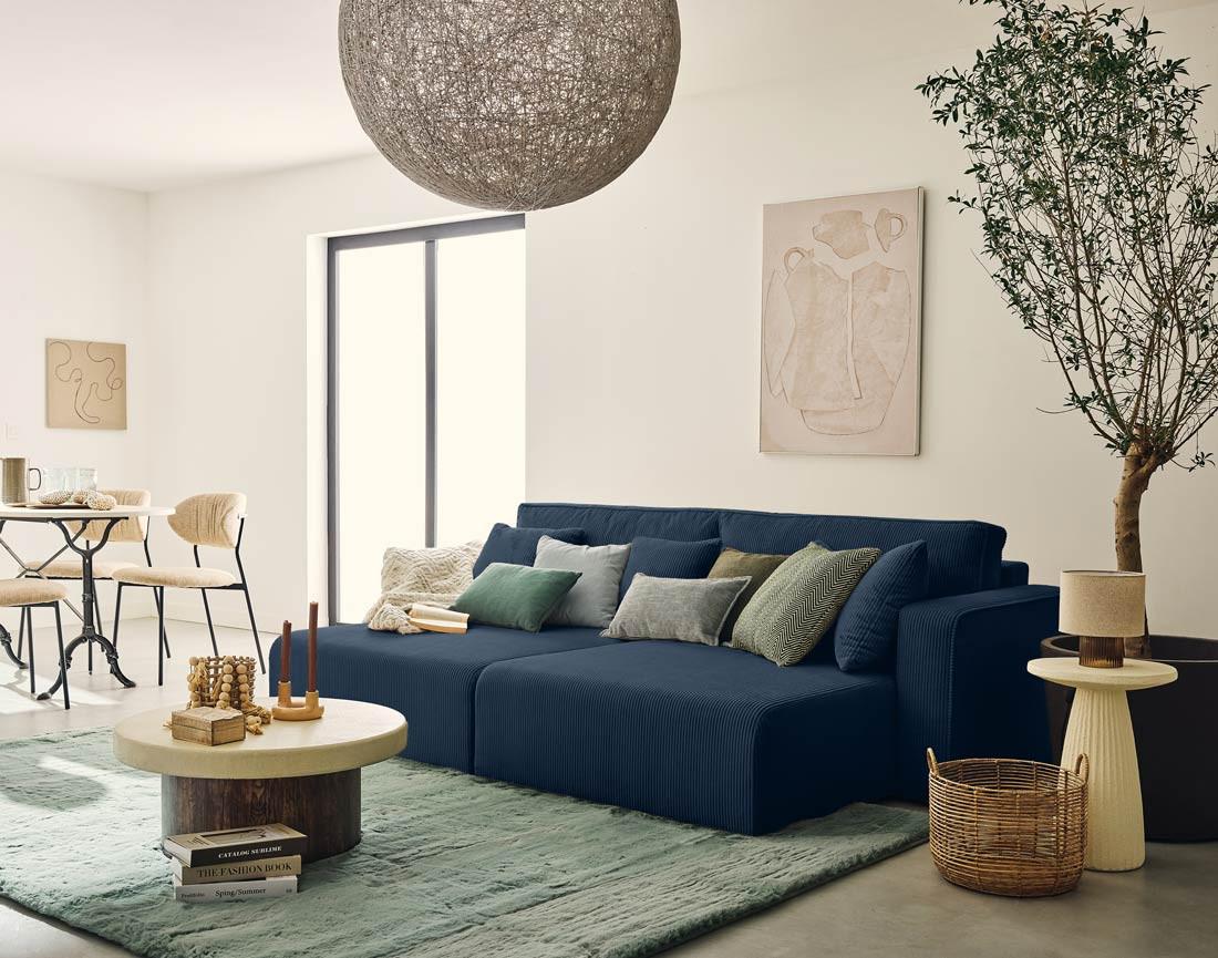 Offrez à votre salon une pièce maîtresse avec le canapé droit Topaze, conçu pour ceux qui recherchent espace et bien-être. Avec ses 4 places et sa double méridienne, il invite à la détente grâce à son assise ultra-profonde, idéale pour s'allonger confortablement. Son velours côtelé, doux au toucher, apporte une touche chaleureuse et tendance, transformant instantanément votre intérieur en un cocon de confort.