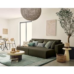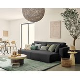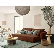 Pensé pour maximiser votre bien-être, le canapé Topaze est accompagné de deux grands coussins de dossier moelleux et de deux coussins décoratifs assortis, pour un soutien optimal et une touche de raffinement. Son design spacieux et accueillant en fait le choix parfait pour partager des instants conviviaux ou se détendre après une longue journée. Élégant, cosy et généreux, il est l'allié parfait des intérieurs modernes en quête de confort et de style. N'hésitez pas à l'associer avec les autres éléments de la collection Topaze pour compléter votre intérieur.