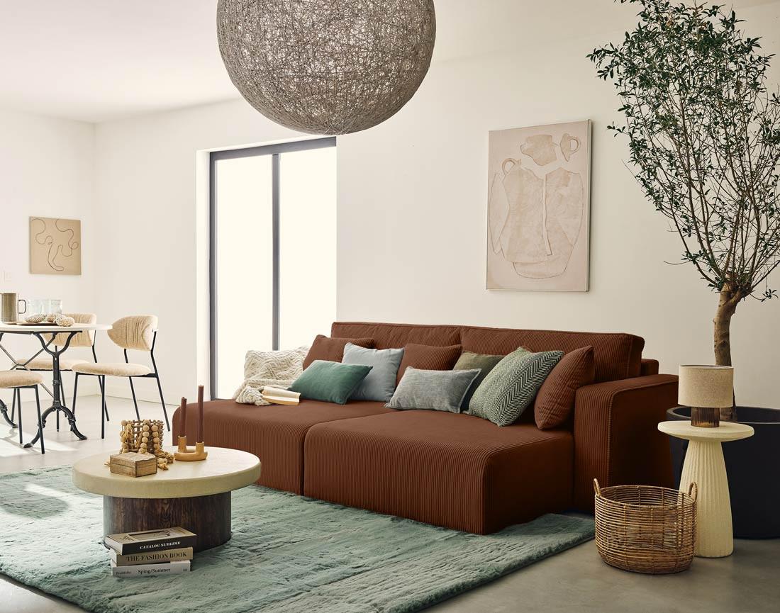 - Présentation de la collection : Craquez pour les canapés et pouf de la collection Topaze. Laissez-vous séduire par leur style boho, leurs lignes arrondies et leurs différents revêtements.