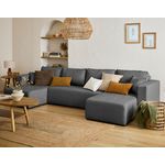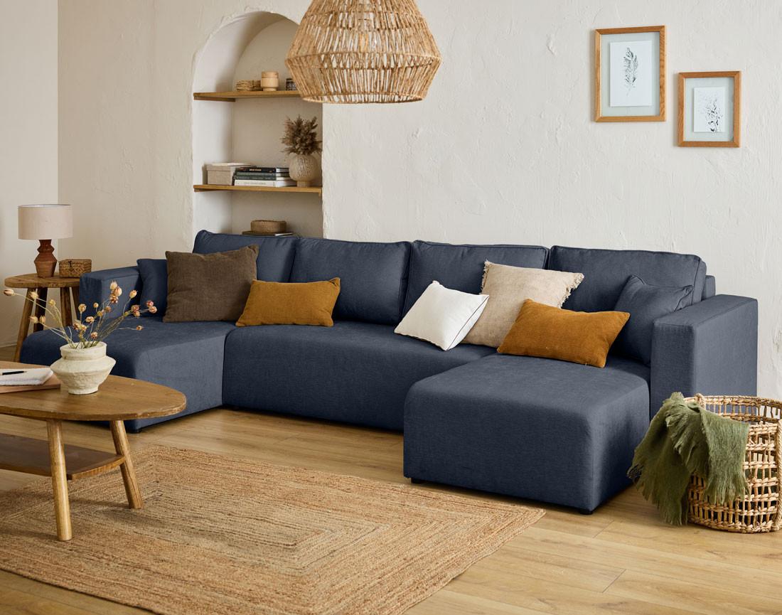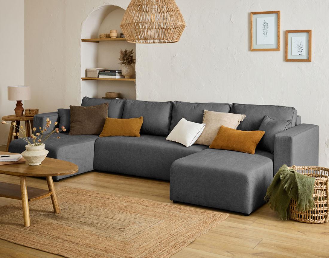 Grâce à son volume généreux, ses 7 places assises ainsi que sa confection panoramique, le canapé TOPAZE fait partie des créations XXL idéales pour les espaces sophistiqués. Famille nombreuse ou maisonnée toujours remplie de convives : ce modèle est fait pour vous ! Vous pouvez y installer aisément 7 personnes tout en ayant la possibilité d'utiliser le mode convertible afin de bénéficier d'un couchage d'appoint. Pratique pour les invités d'un soir, pour accueillir vos siestes du dimanche après-midi, ou tout simplement pour étendre vos jambes et vous sentir pleinement à votre aise ! Votre confort est assuré par le canapé panoramique TOPAZE grâce à son assise à ressorts ondulés, sa densité de garnissage généreuse, ses larges accoudoirs ainsi que ses agréables coussins de dossier. Les deux méridiennes, aux dimensions similaires, apportent une touche de structure et de modernité à votre canapé : de quoi sublimer votre pièce par un meuble volumineux et raffiné à la fois.