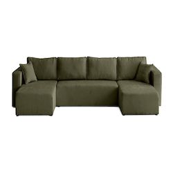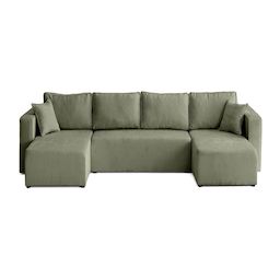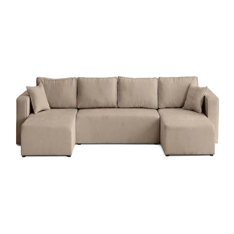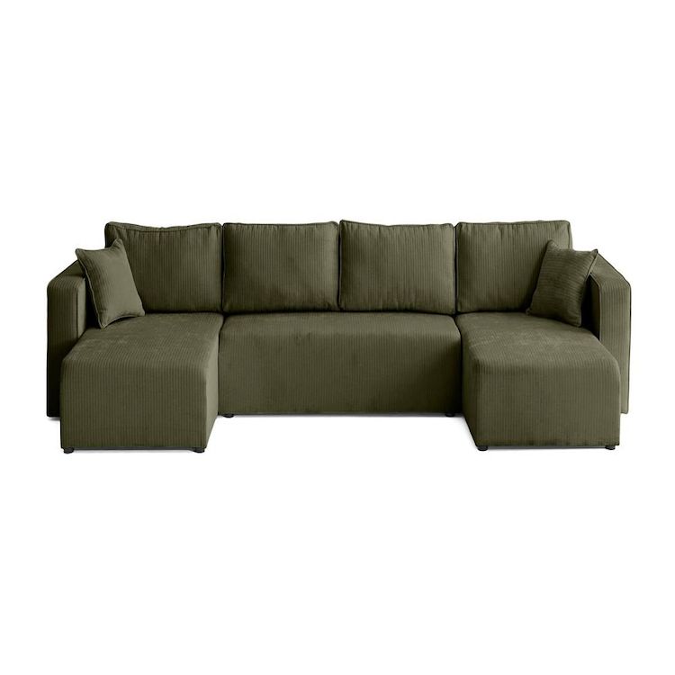 - Détail des matières : Assise : Mouse polyuréthane 28kg/m3 – Dossier : Flocons de mousse – Ressorts zig-zags – Structure en bois et panneaux de particules – Revêtement en velours côtelé plat 100% polyester – Pieds en plastique noir