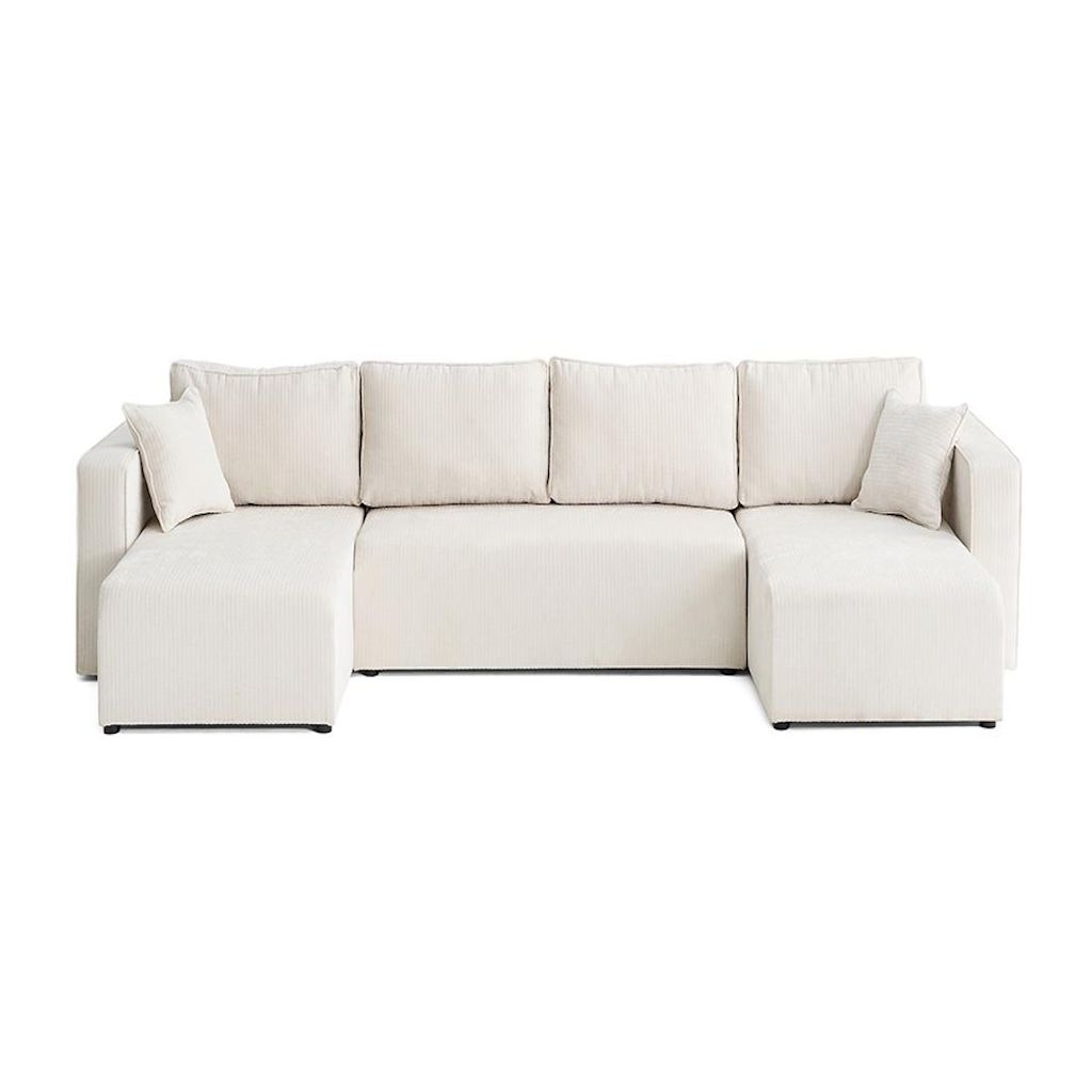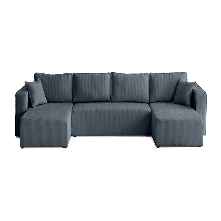 Topaze - canapé panoramique en u - 7 places - convertible avec coffre - en velours côtelé plat