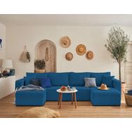 Topaze - canapé panoramique en u - 7 places - convertible avec coffre - en velours côtelé