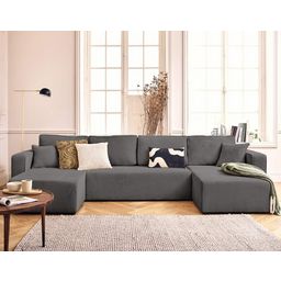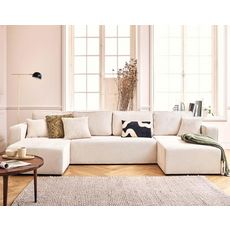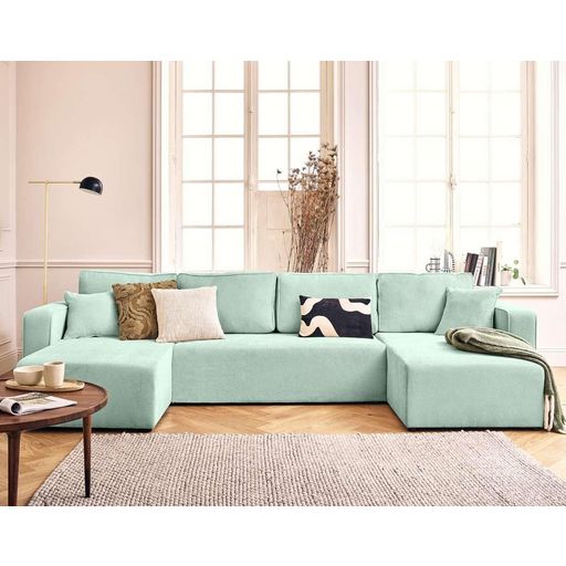 Le canapé panoramique Topaze en U est conçu pour apporter à la fois du confort et une grande praticité à votre intérieur. Avec ses 7 places, il est parfait pour accueillir famille et amis dans une ambiance conviviale. En un clin d'œil, grâce à son dossier rabattable, ce canapé se transforme en lit d'appoint confortable pour vos invités. Son revêtement en velours texturé apporte une touche élégante et chaleureuse à votre salon, tandis que les deux coussins décoratifs inclus complètent le look pour un style harmonieux et soigné.