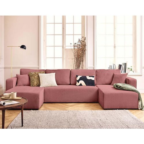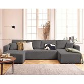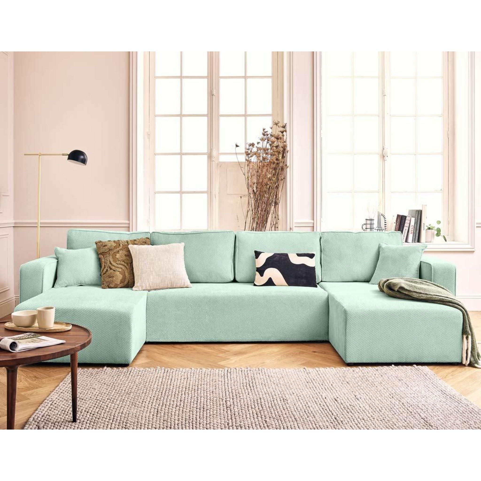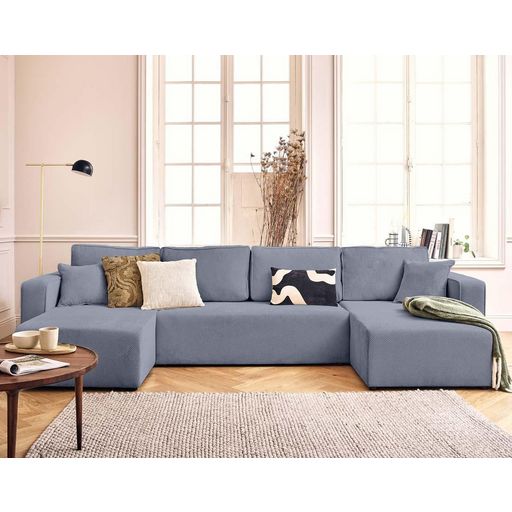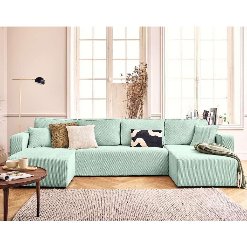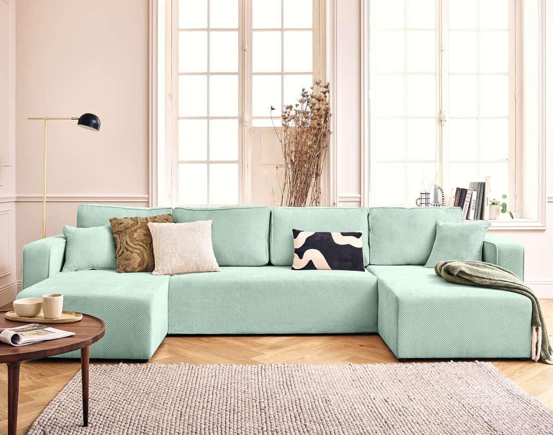 Topaze - canapé panoramique en u 7 places convertible avec coffre en velours texturé