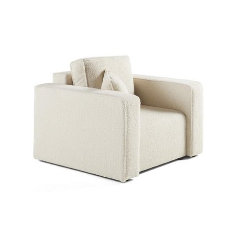 Au-delà de son apparence élégante, le fauteuil Topaze se distingue par son confort exceptionnel. Il est conçu pour offrir une assise moelleuse et accueillante, idéale pour se détendre après une journée bien remplie ou pour profiter de moments de calme. Son dossier rembourré et son assise profonde procurent un soutien optimal, tandis que le coussin décoratif inclus ajoute une touche supplémentaire de confort. Ce coussin, assorti au revêtement en bouclette, est un véritable plus pour améliorer votre confort lorsqu'il est placé derrière le dos ou sous la tête. L'ergonomie du fauteuil Topaze a été pensée pour offrir un confort maximal tout en occupant peu d'espace. Adapté aux petits espaces, il est parfait pour les appartements ou les pièces plus compactes. Son design épuré et minimaliste s'intègre facilement dans tous les intérieurs, sans alourdir visuellement la pièce. Le fauteuil Topaze est aussi un meuble durable, grâce à sa fabrication européenne qui garantit des finitions de qualité.