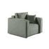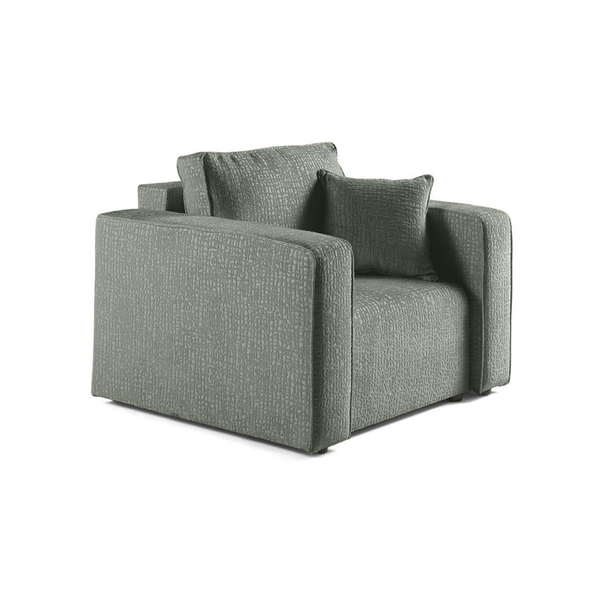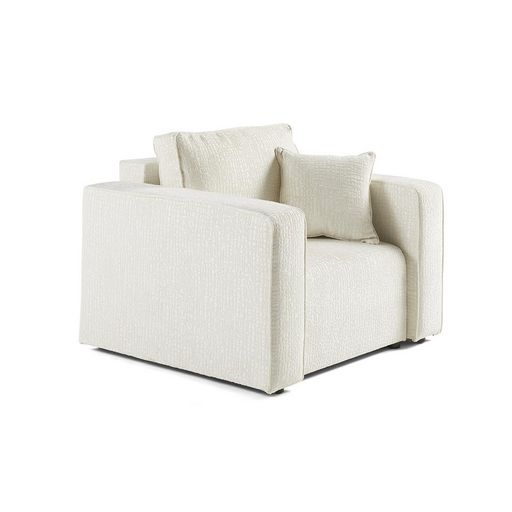- Détail des matières : Assise : Mouse polyuréthane 28kg/m3 – Dossier : Flocons de mousse – Ressorts ondulés – Structure en bois et panneaux de particules – Revêtement en velours relief 100% polyester – Pieds en plastique noir