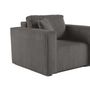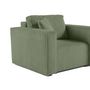 - Détail des matières : Assise : Mouse polyuréthane 28kg/m3 – Dossier : Flocons de mousse – Ressorts ondulés – Structure en bois et panneaux de particules – Revêtement en velours côtelé 100% polyester – Pieds en plastique noir