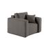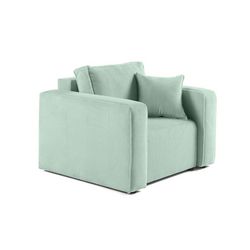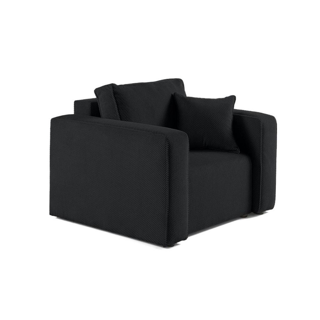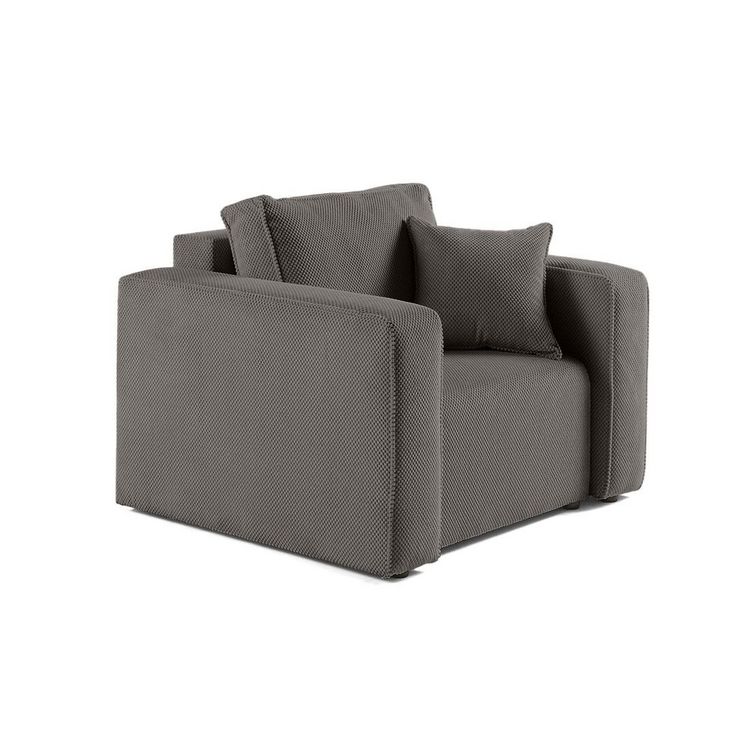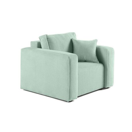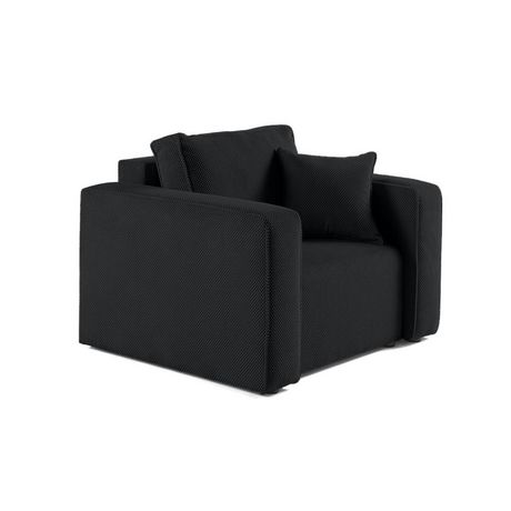 - Détail des matières : Assise : Mouse polyuréthane 28kg/m3 – Dossier : Flocons de mousse – Ressorts ondulés – Structure en bois et panneaux de particules – Revêtement en velours texturé 100% polyester – Pieds en plastique noir