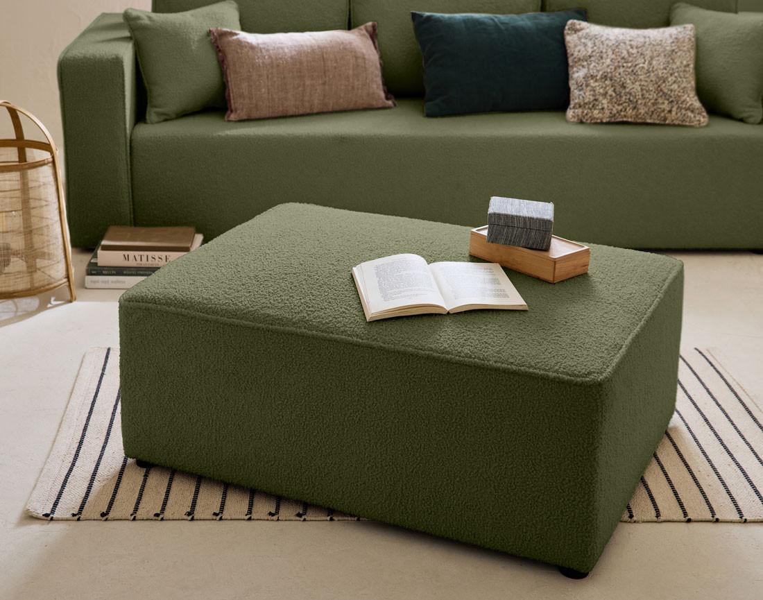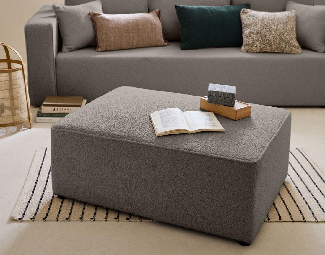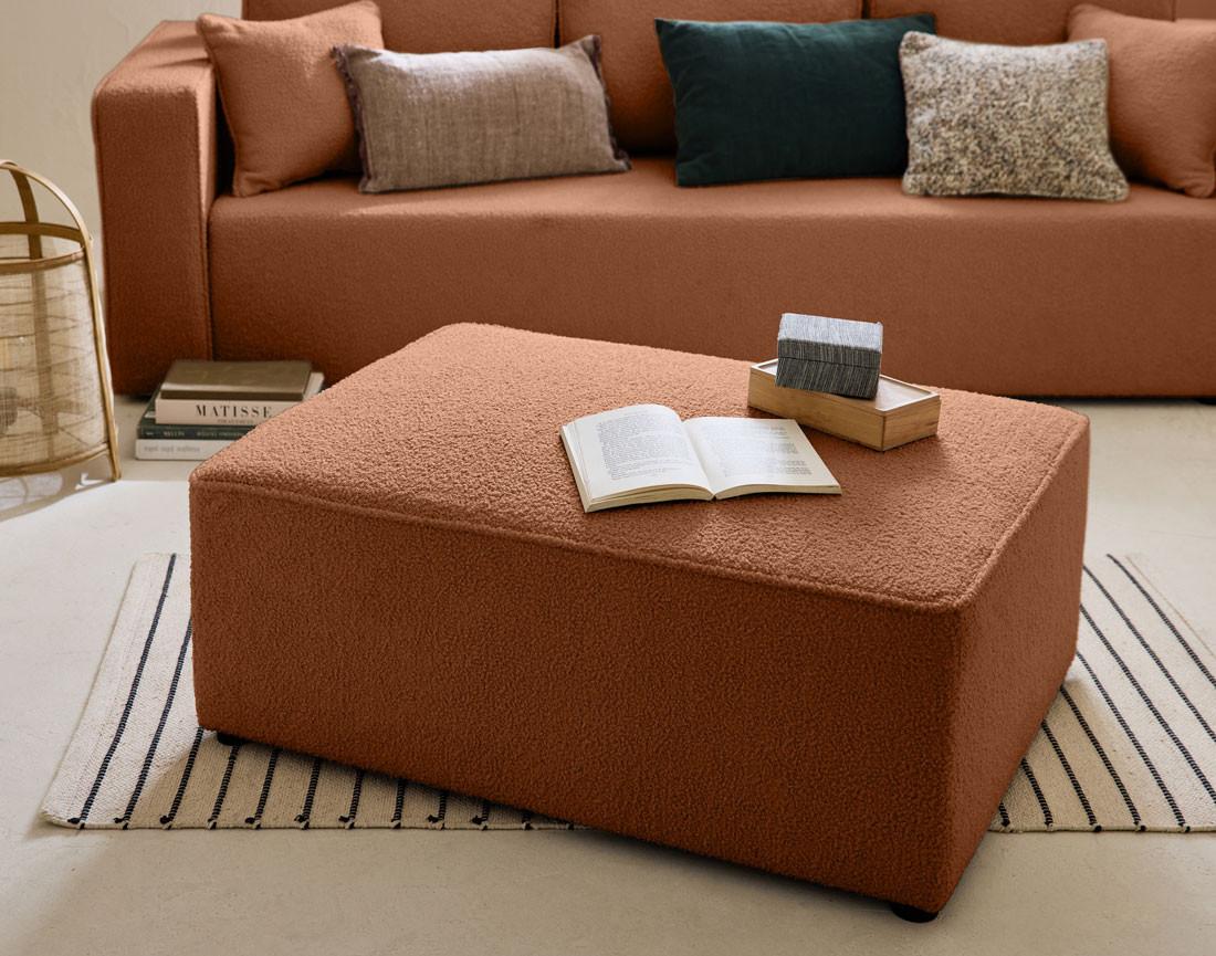 Ce joli pouf fait partie de la collection Topaze : un ensemble d'assises, allant du canapé 7 places panoramique au canapé d'angle réversible 4 places, tous disponibles en tissu bouclette. N'hésitez pas alors à associer le pouf Topaze avec une assise grand format de la même collection, afin de concevoir un intérieur harmonieux et particulièrement confortable. Vous pouvez aussi choisir un canapé 3 places Topaze en velours côtelé plat, afin d'apporter un joli contraste des matières avec votre pouf en tissu bouclette !