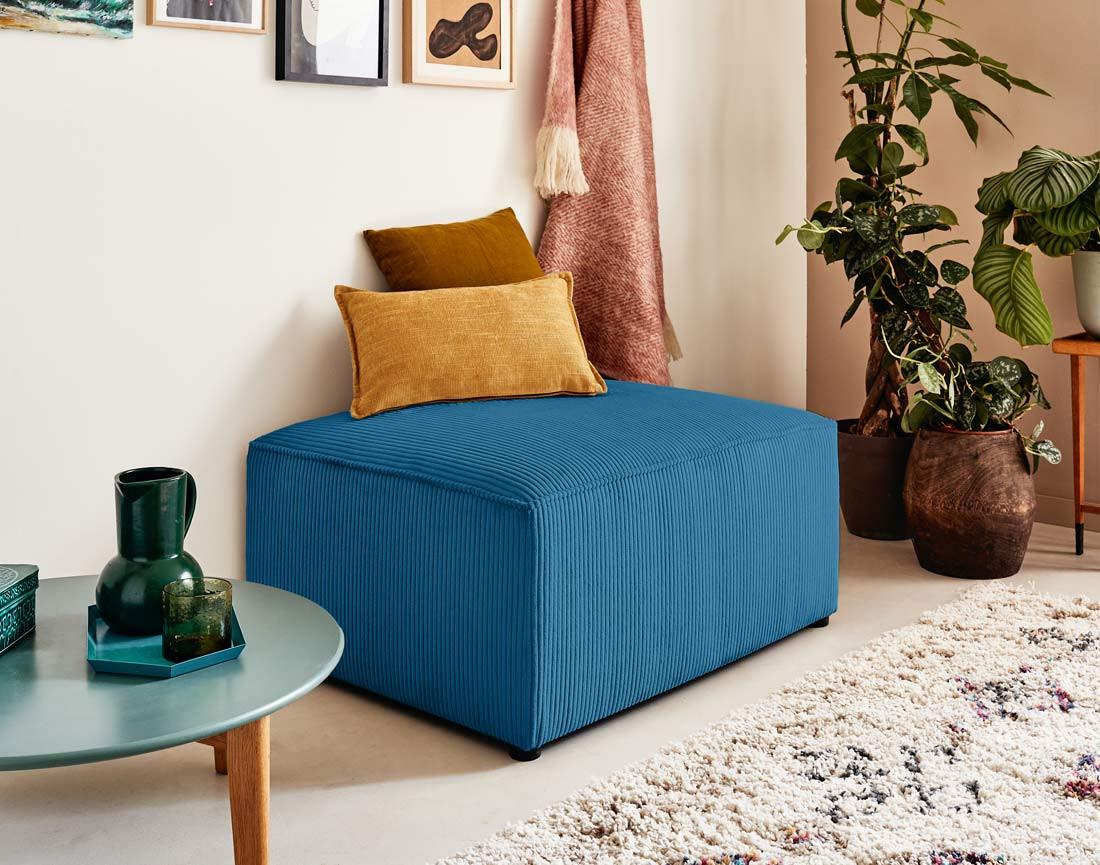 Le pouf Topaze apportera du caractère à votre salon. Laissez-vous séduire par son style boho, ses lignes arrondies et la douceur de son revêtement en velours côtelé !