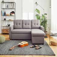 La première particularité du canapé Tulipe est son angle réversible. Vous pouvez positionner la méridienne à gauche ou à droite du canapé selon vos envies. Il est également doté d'une fonction convertible libérant un couchage d'appoint de 173x117cm pouvant accueillir deux personnes pour un usage occasionnel. Le canapé Tulipe cache en plus un coffre de rangement sous sa méridienne, idéal pour y stocker vos plaids et coussins.