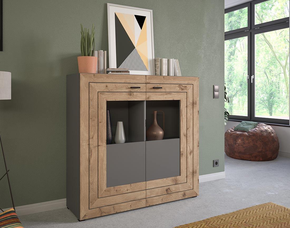 Wexford - buffet haut - gris et effet bois - 120 cm