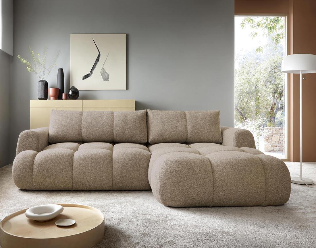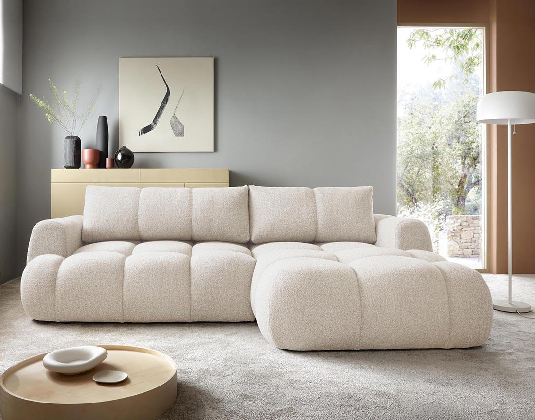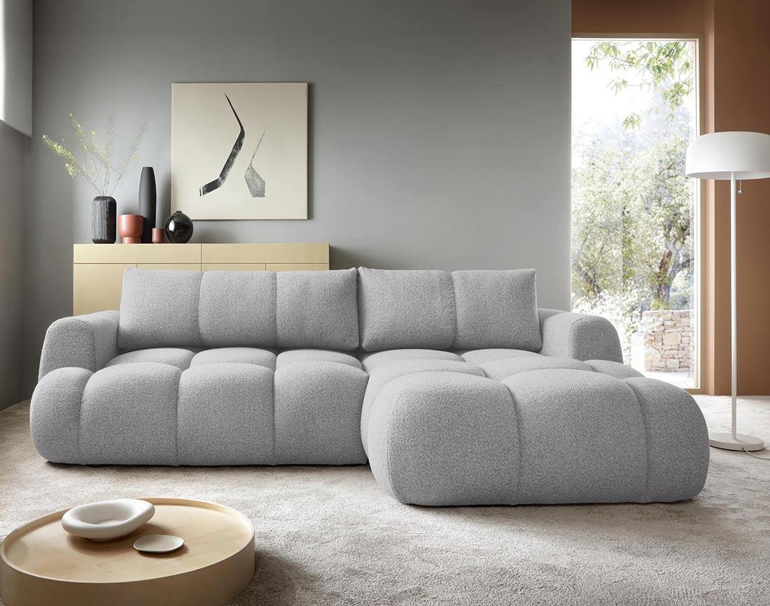 Yulin - canapé d'angle droit 4 places convertible avec coffre en tissu bouclette