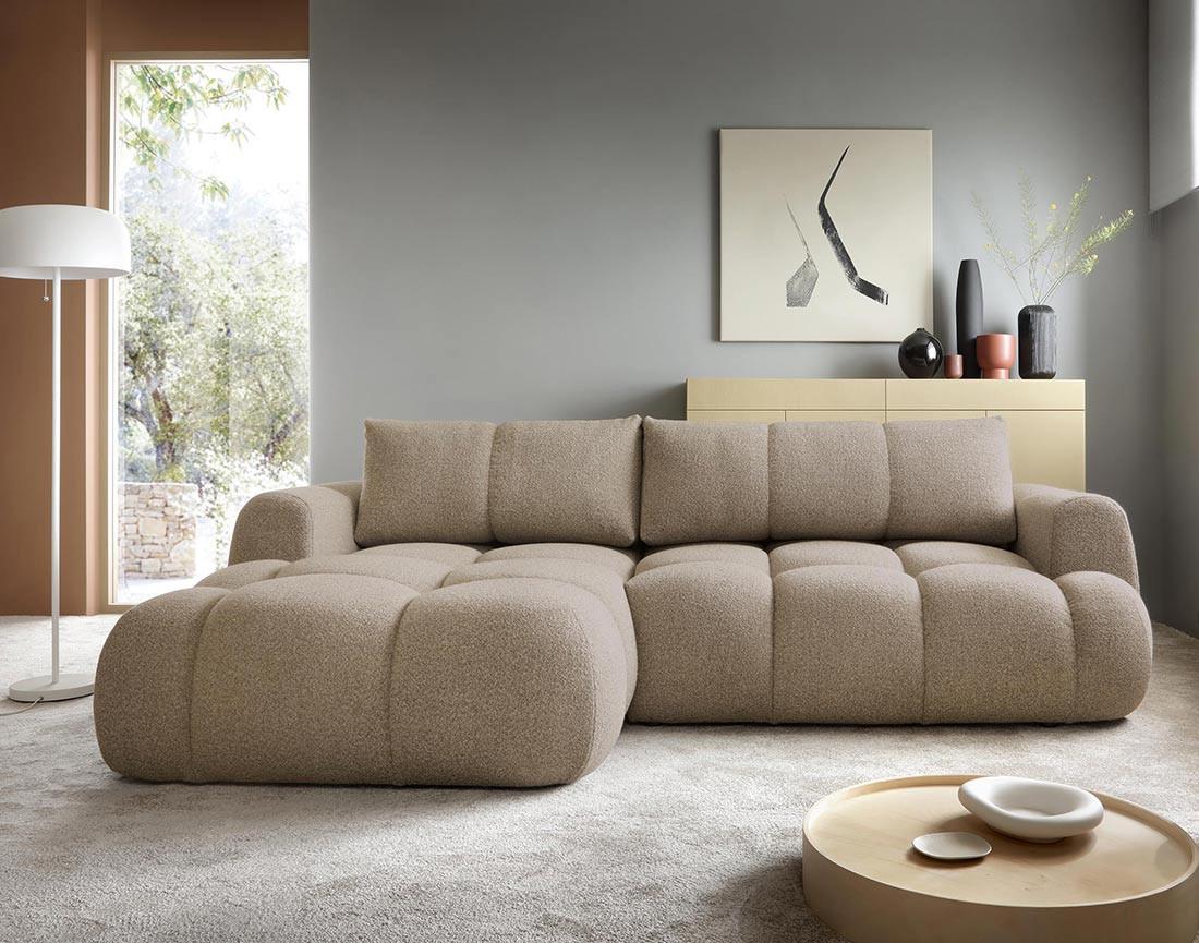 Yulin - canapé d'angle gauche 4 places convertible avec coffre en tissu bouclette