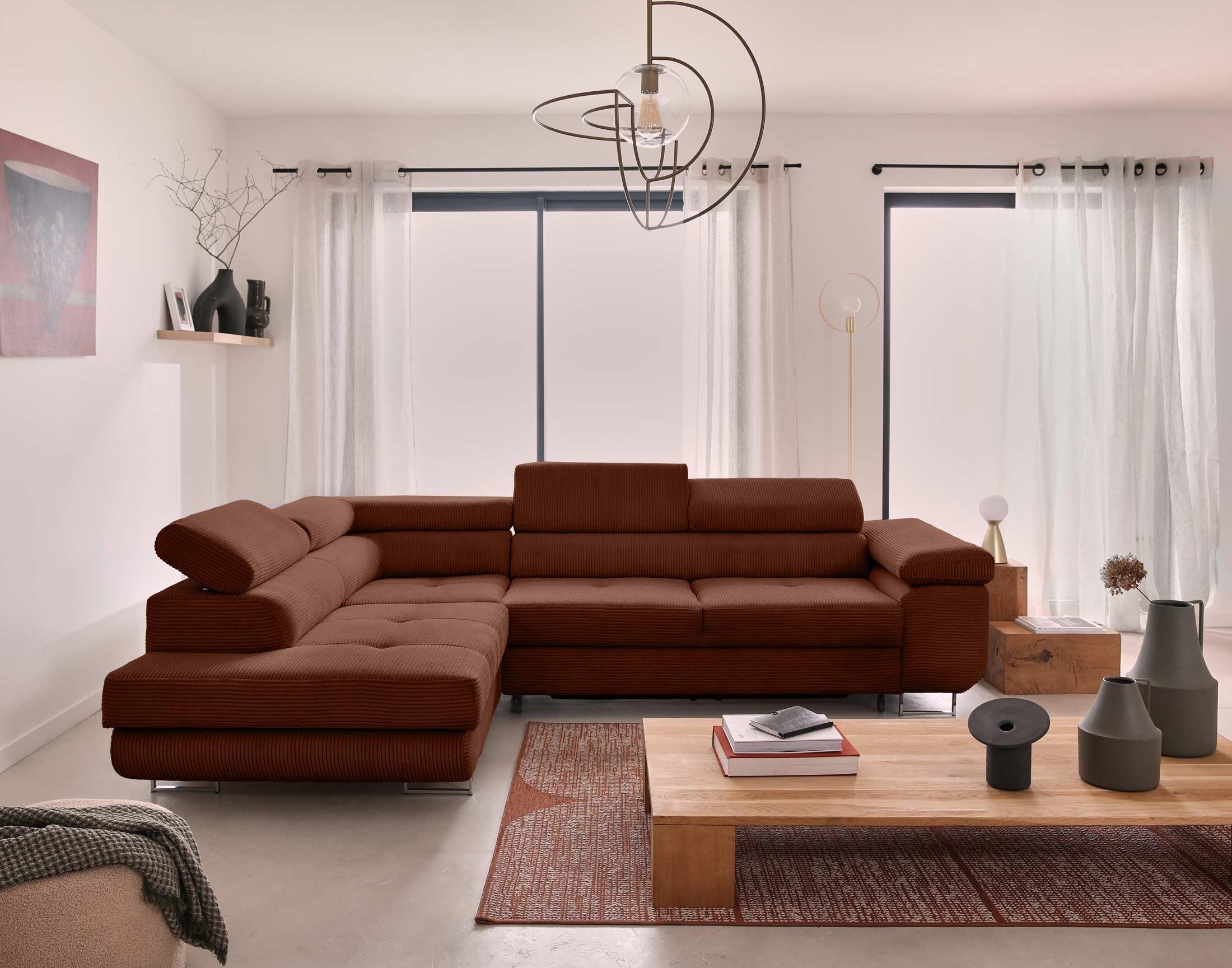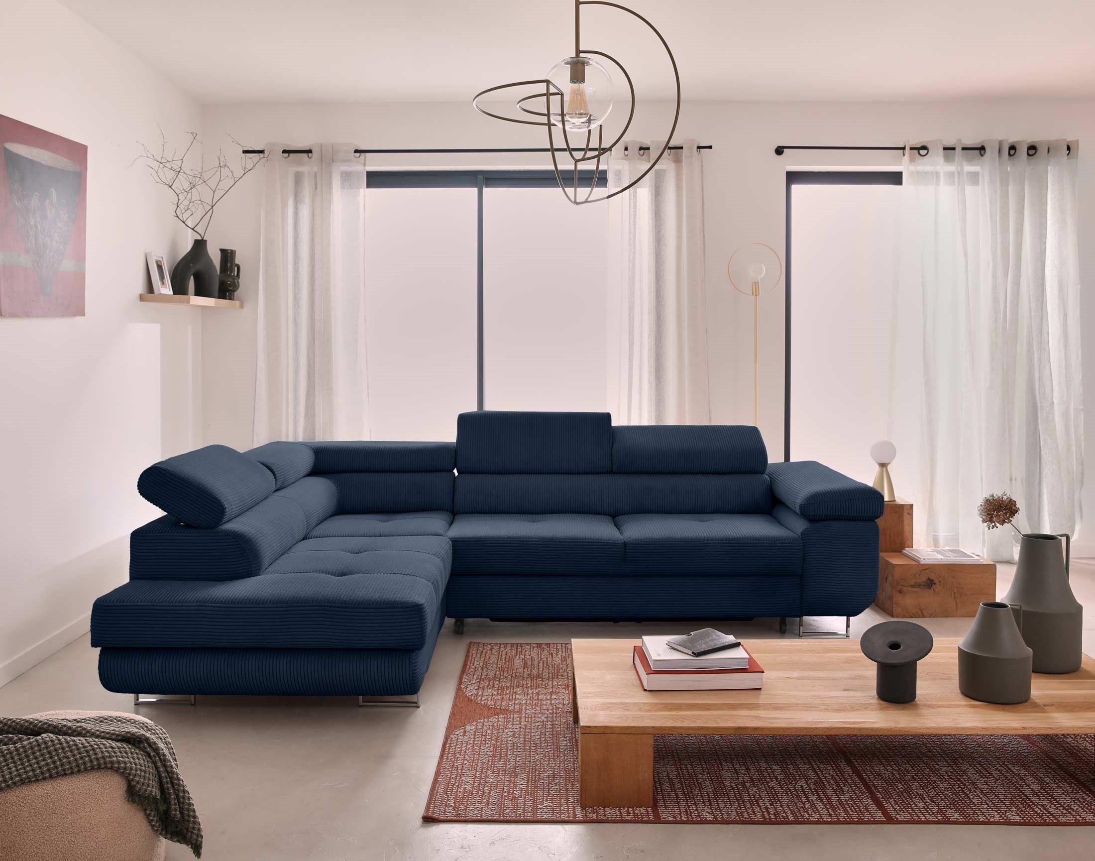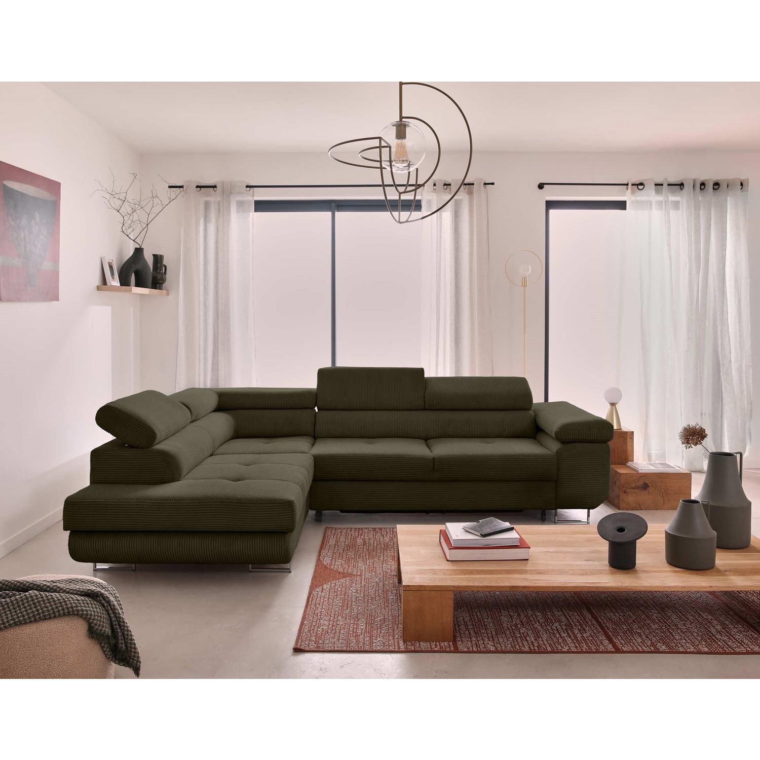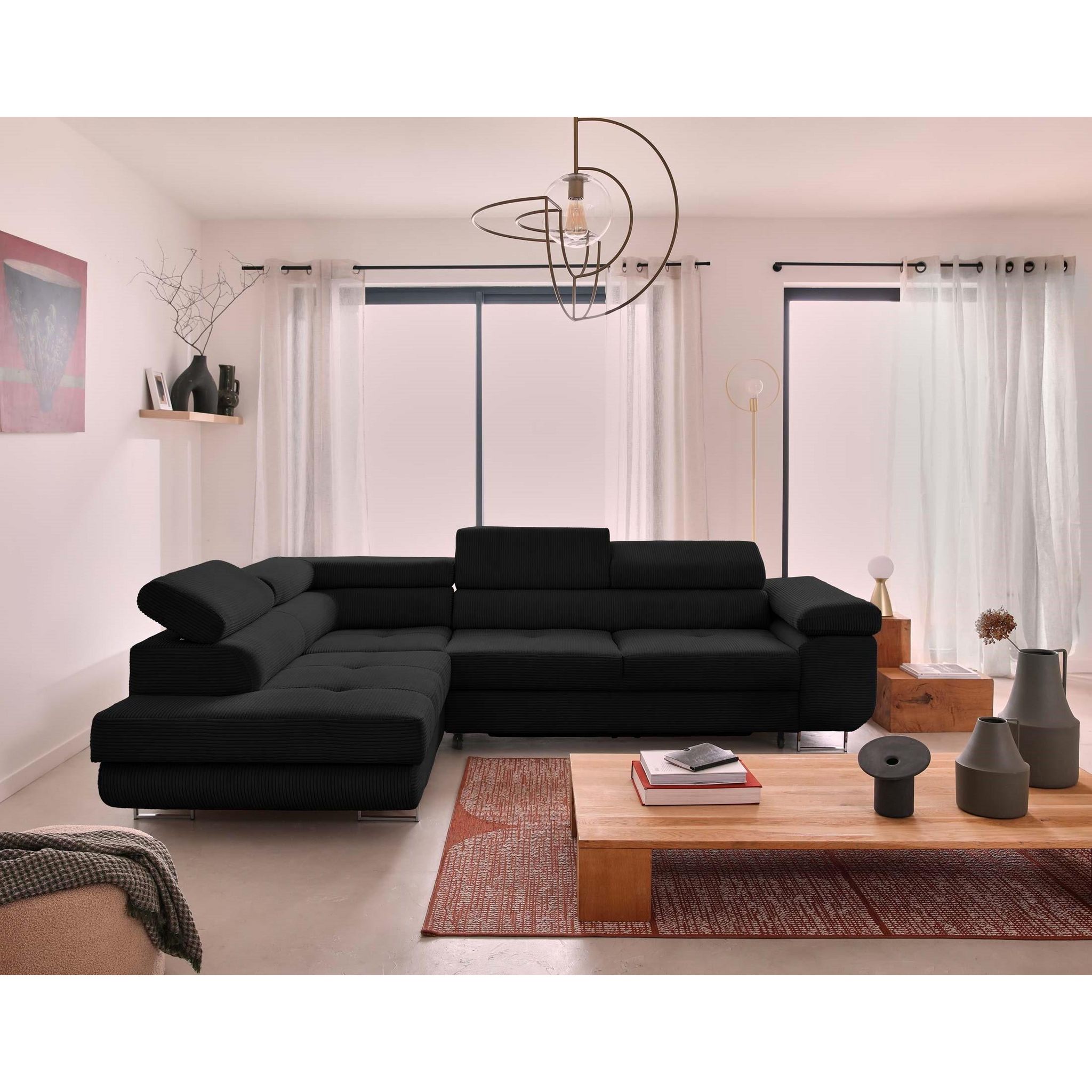 Zaria - canapé d'angle gauche - convertible avec coffre et têtières réglables - 5 places - en velours côtelé