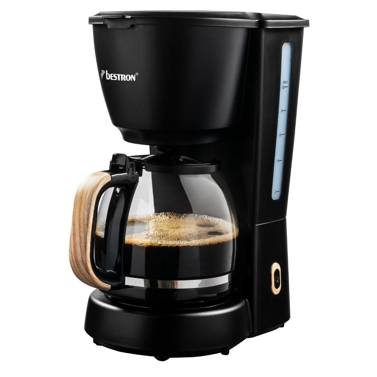 Bestron ACM900BW Avec cette cafetière filtre en bois noir ACM900BW de la marque Bestron, vous pouvez profiter d'une dose d'énergie dans une tasse de délicieux café à tout moment ! Elle prépare jusqu'à 10 tasses de café. La cafetière à filtre possède un filtre permanent et peut également être utilisé