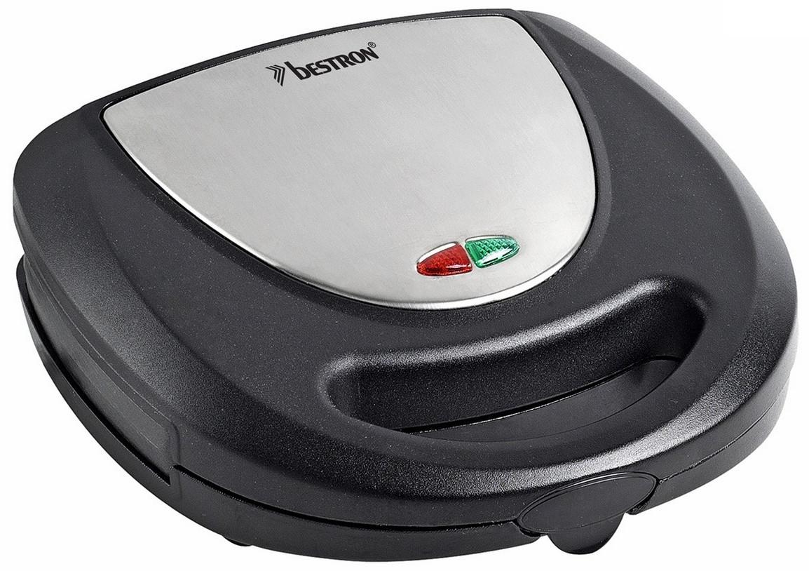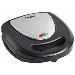 Bestron ASM8010 Multi-gril Bestron ASM8010 doté de 3 jeux de plaques interchangeable pour : 2 croque monsieur, 2 gaufres et griller des hamburgers, du poulet et du poisson. Corps à parois isolantes. Réglage automatique de la température. Lampe témoin ?puissance? rouge et lampe témoin ?prêt à l'emploi? vert. Se range à la verticale pour économiser l'espace. Plaques de cuisson amovibles avec revêtement anti-adhésif et facile à nettoyer. Pieds antidérapants.