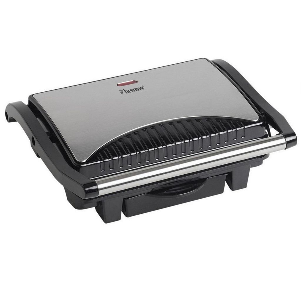 Bestron ASW113S Gril à paninis BESTRON ASW113S, multifonctionnel et rapide pour griller: Paninis, steaks, toasts, légumes, gambas, viandes, poissons, etc.Idéal pour une grillade rapide et sans graisse, nourriture parfaitement grillée des deux côtés.Plateau de récupération des graisses inclus.Grande