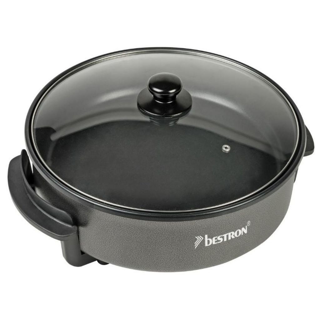 Bestron AHP1500Z Poêle électrique AHP1500Z de Bestron multifonctions pour faire frire, cuire et maintenir au chaud.Un bord extra profond et donc parfaitement adapté pour la préparation des pâtes, paëlla, chili con carne, boulettes de viande, etc.Avec revêtement anti-adhésif, huile ou beurre pas néce
