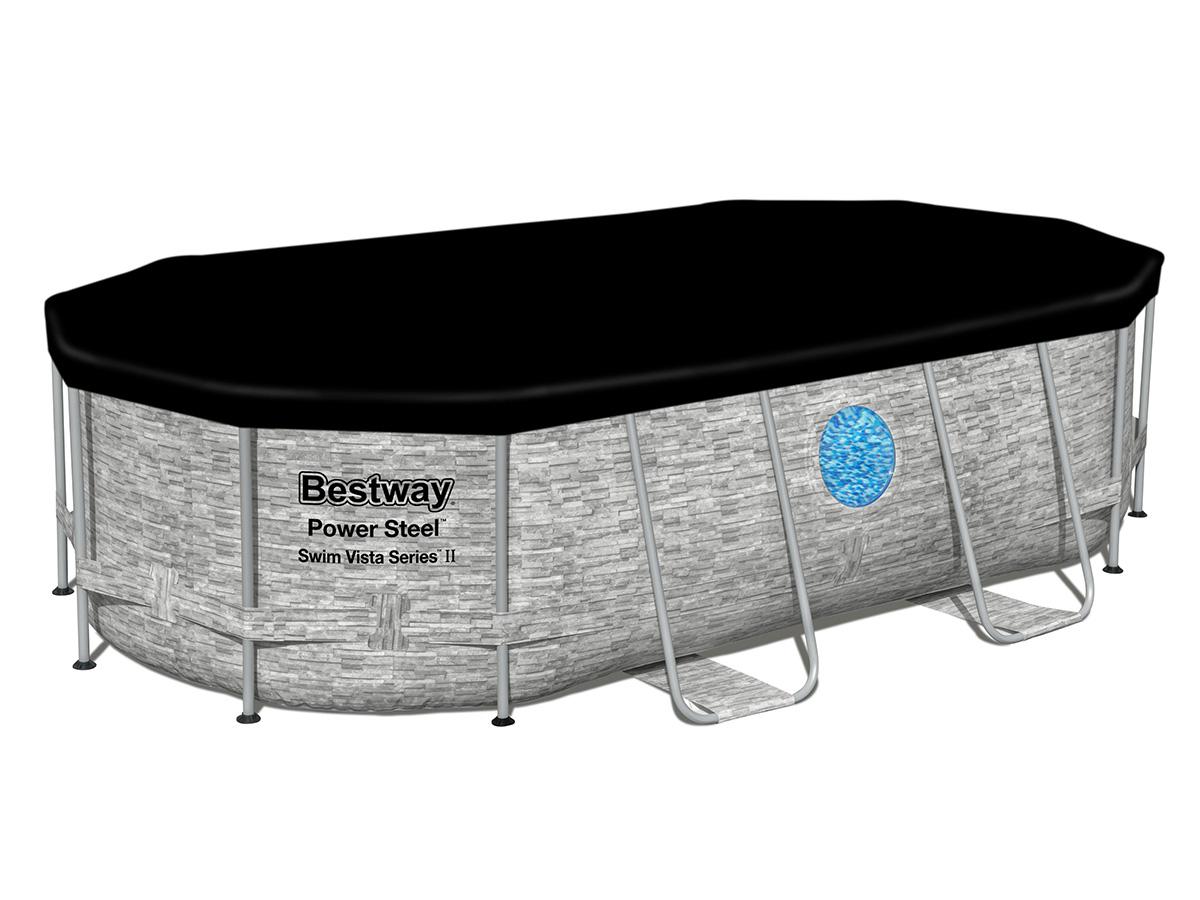 Cette bâche d'hivernage Bestway convient aux piscines ovales Power Steel mesurant 4,27 x 2,50 x 1,00 m.