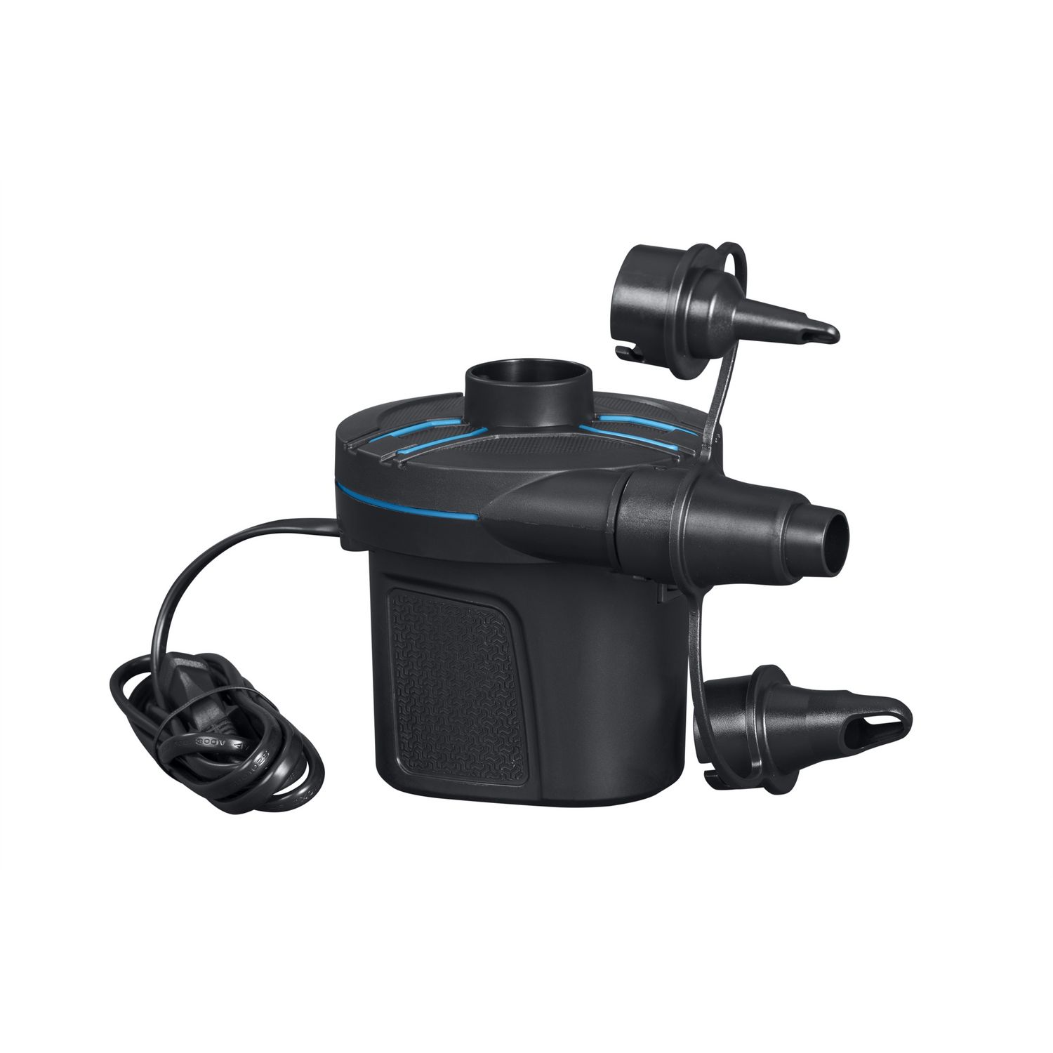 Gonfleur électrique Powertouch(TM) : * Branchement secteur 220-240 V * Dimension: 11.3 cm x 10.1 cm x 11cm * Débit d'air : 680 L/min * Pression maxi : 390 mmH2O * 3 adaptateurs de valve