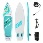 Bestway 65347 Partez en balade avec le kit paddle SUP gonflable et pagaie Hydro-Force Aqua Glider TravelTech résistant et pratique grâce à son format compact.Cette planche SUP gonflable de randonnée, car elle est parfaite pour de longues randonnées sur eau calme, grâce à sa stabilité, sa vitesse et