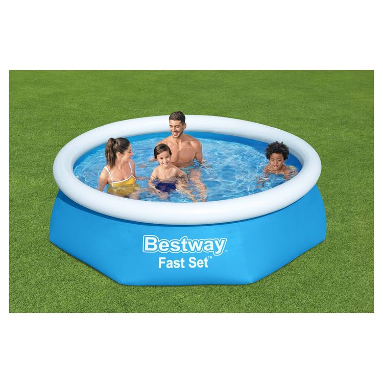 Idéales pour votre jardin, les piscines Bestway® Fast Set™ offrent une installation rapide et simple et conviennent à toute la famille. Les familles peuvent choisir parmi une gamme de modèles et d'accessoires de piscine. Ces piscines s’installent facilement sur une surface plane. Il suffit de gonfler le boudin du haut et de la remplir en seulement 10 minutes ! La piscine Fast Set se redresse au fur et à mesure qu'elle se remplit d'eau, ce qui facilite l'installation.