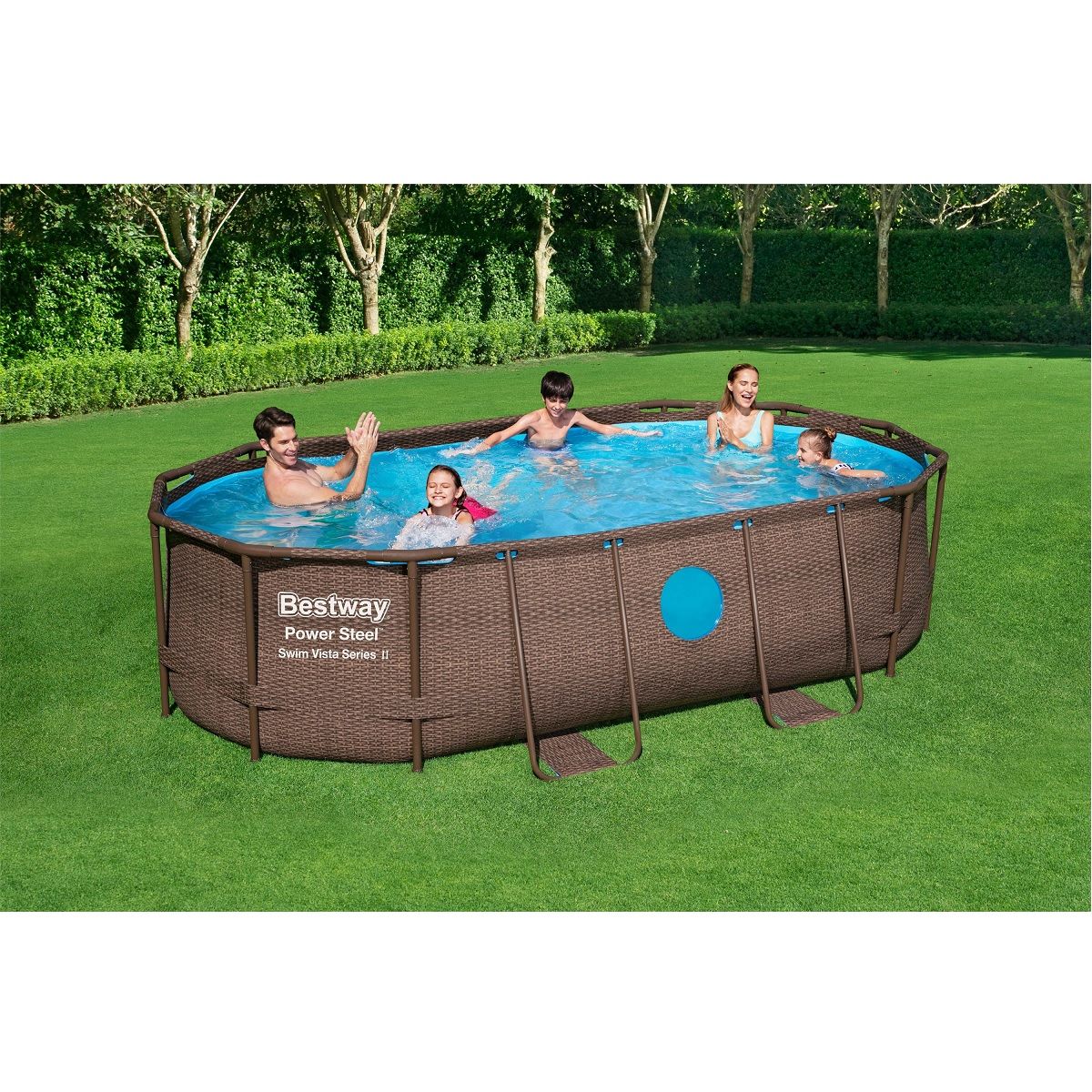 Piscine hors sol 427 x 250 x 100 cm Power Steel™ SwimVista ovale motif rotin avec hublots