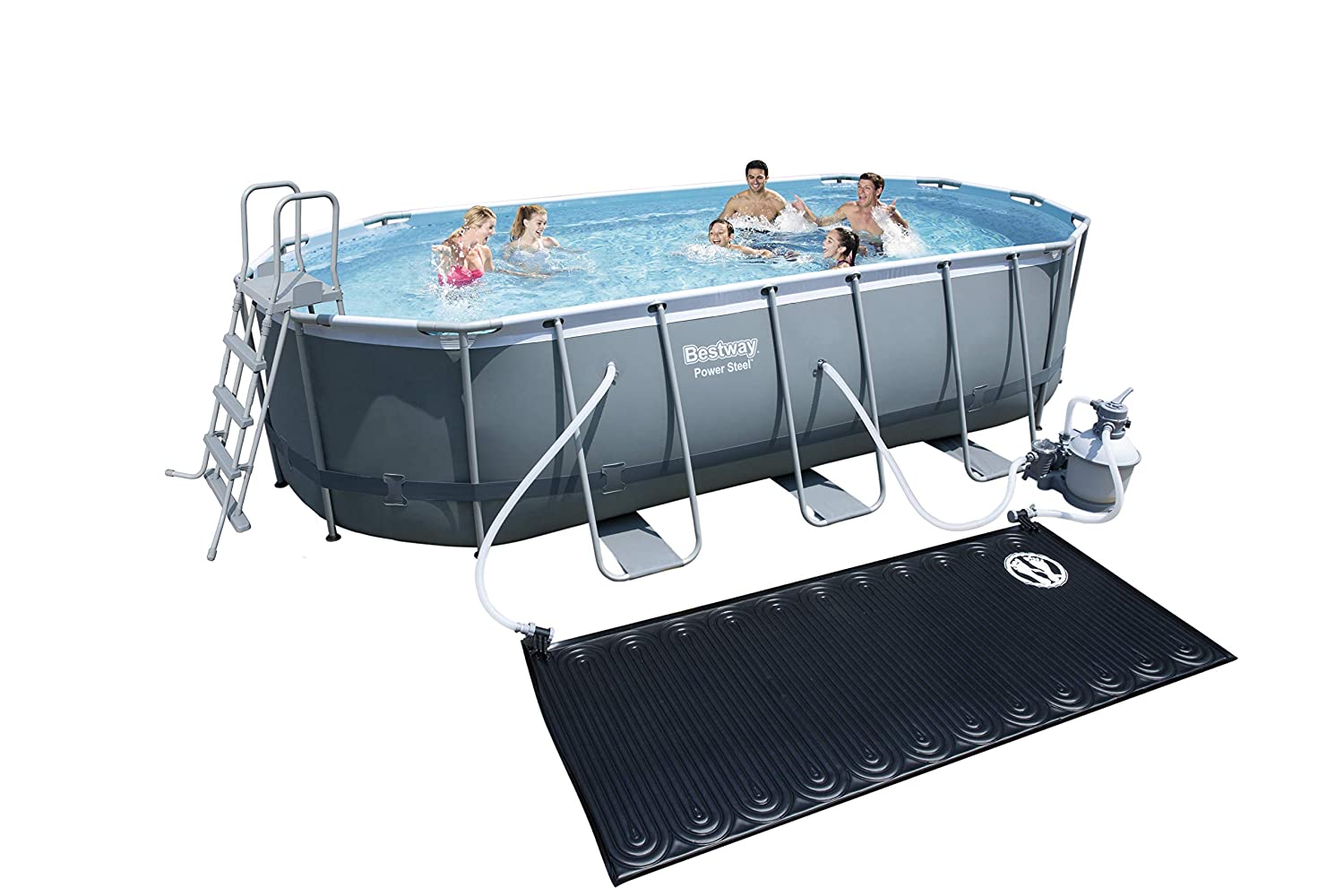 En savoir +La Piscine hors sol Power Steel™ L.549cmxl.274cmxh.122cm de forme ovale est facile à monter et à entretenir. Son armature en acier est résistante à la rouille. Elle est équipée d'une cartouche de filtration à sable, d'1 pompe de filtration, d'1 échelle de sécurité, d'1 bâche 4 saisons pour protéger votre piscine toute l'année. C'est l'assurance de passer de bons moments de baignade dès les premiers beaux jours.